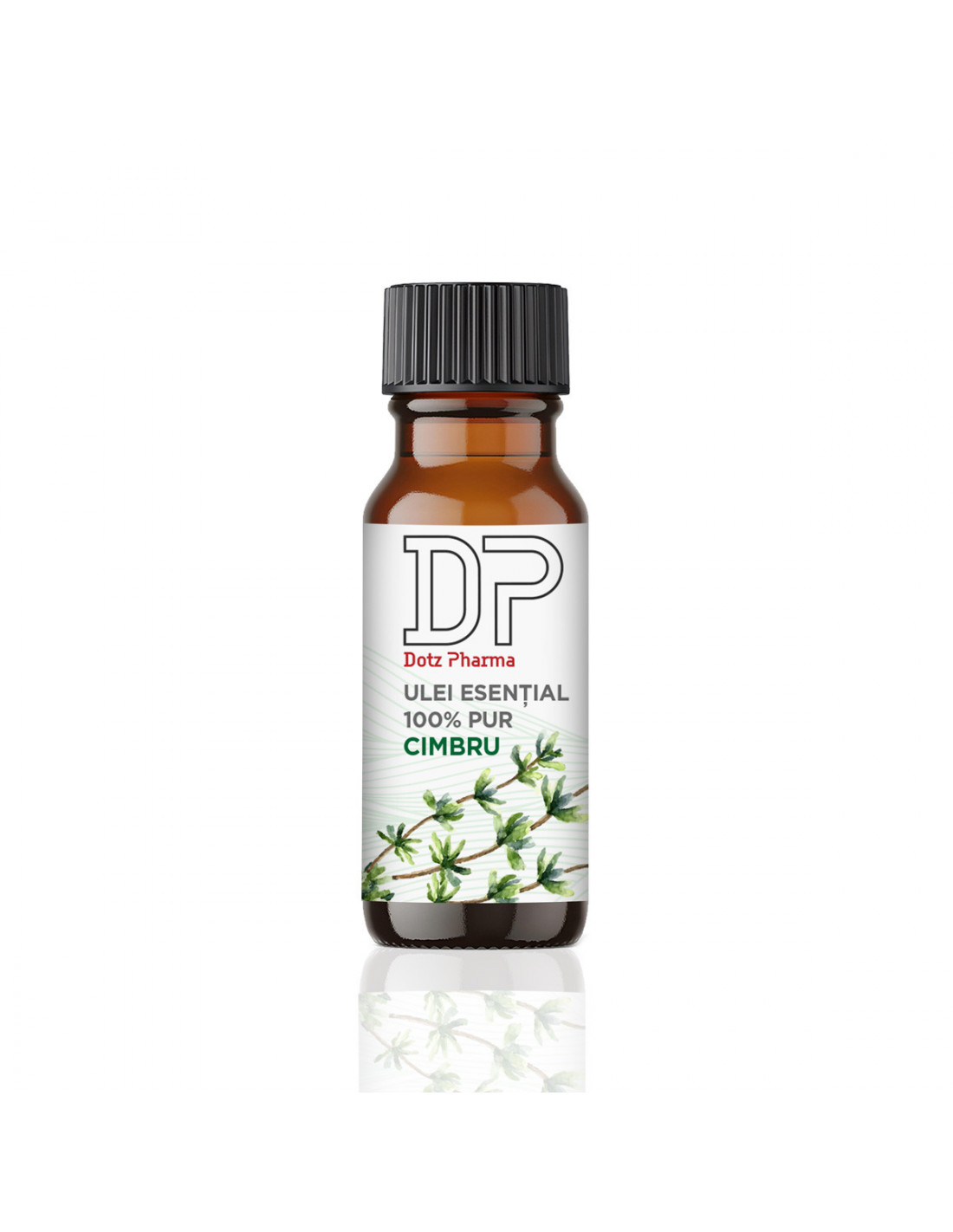 Uleiul esențial de Cimbru (Thymus Vulgaris) este obținut prin distilarea cu vapori de apă a florilor și frunzelor. Are un parfum intens, aromatic, cu note ușor picante, fiind apreciat pentru efectul purificator și tonic. Este ideal pentru aromaterapie, masaj și băi revitalizante.