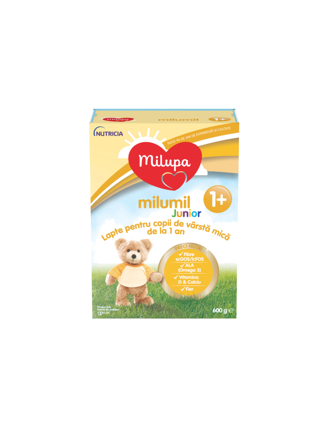 Milupa Milumil Junior 1+ 600 g este o formulă de continuare destinată copiilor de la 1 an, creată pentru a completa dieta copilului în creștere. Conține tehnologia PreciNutri+ ce include un mix de fibre scGOS / lcFOS pentru susținerea digestiei. De asemenea, formula oferă nutrienți esențiali precum fier, calciu și vitamina D, care contribuie la dezvoltarea normală a creierului și a oaselor.