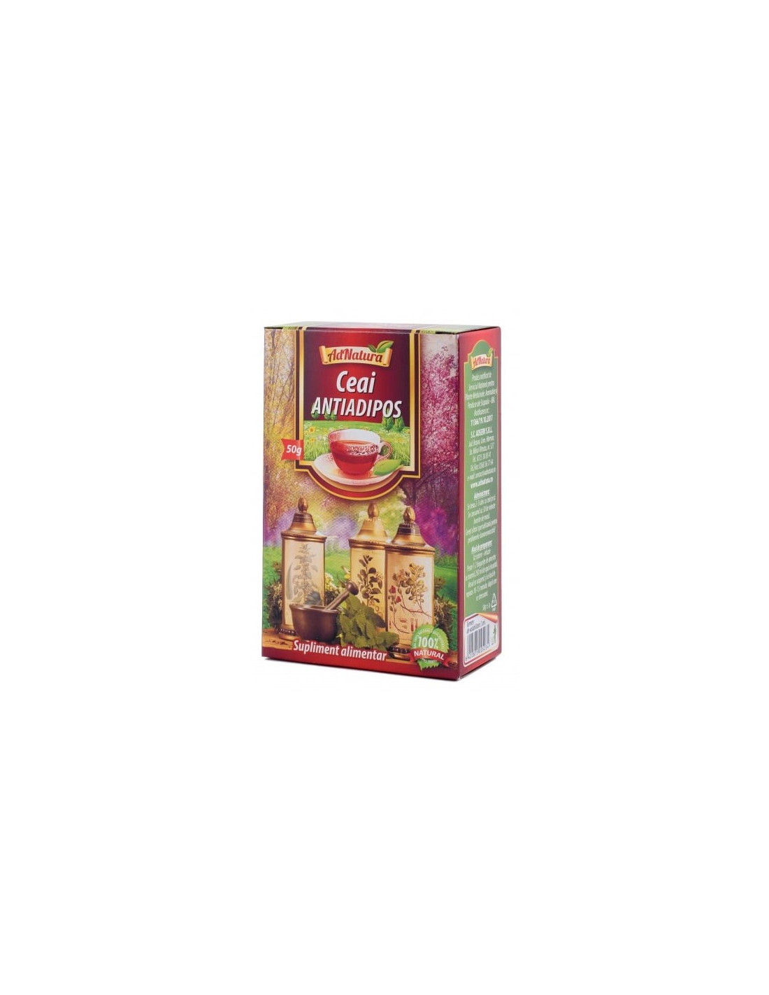 Ceaiul Antiadipos AdNatura este un amestec natural de plante medicinale care contribuie la arderea grăsimilor, stimularea metabolismului și eliminarea toxinelor din organism. Recomandat ca adjuvant în curele de slăbire, acest ceai sprijină drenajul limfatic și funcționarea normală a ficatului și rinichilor.