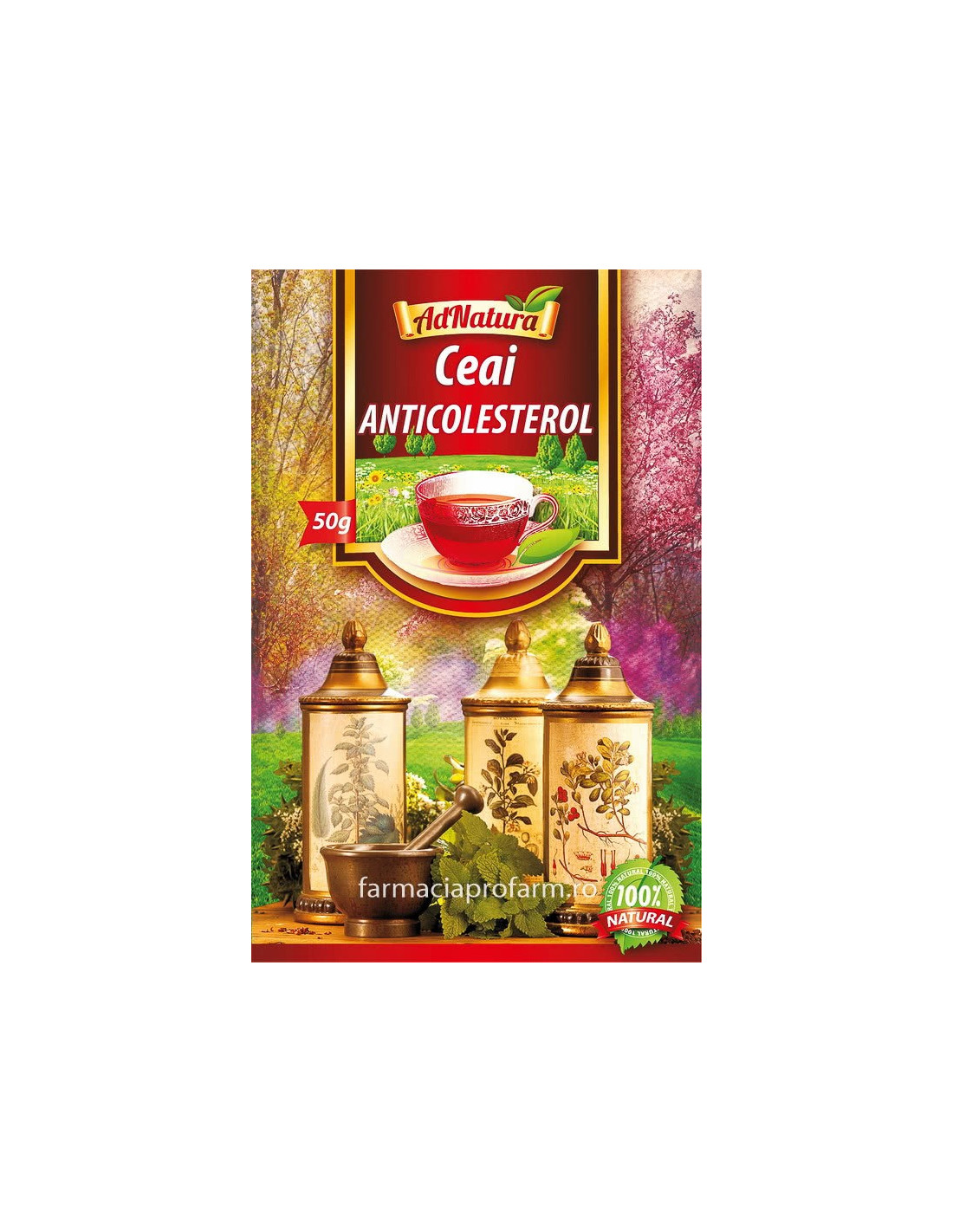 Ceaiul Anticolesterol AdNatura este un remediu natural creat special pentru reglarea metabolismului lipidic și susținerea sănătății cardiovasculare. Acest amestec tradițional de plante medicinale românești acționează sinergic pentru a contribui la reducerea nivelului de colesterol „rău” (LDL) și a trigliceridelor, favorizând în același timp creșterea colesterolului „bun” (HDL) și menținerea unei circulații sanguine normale.