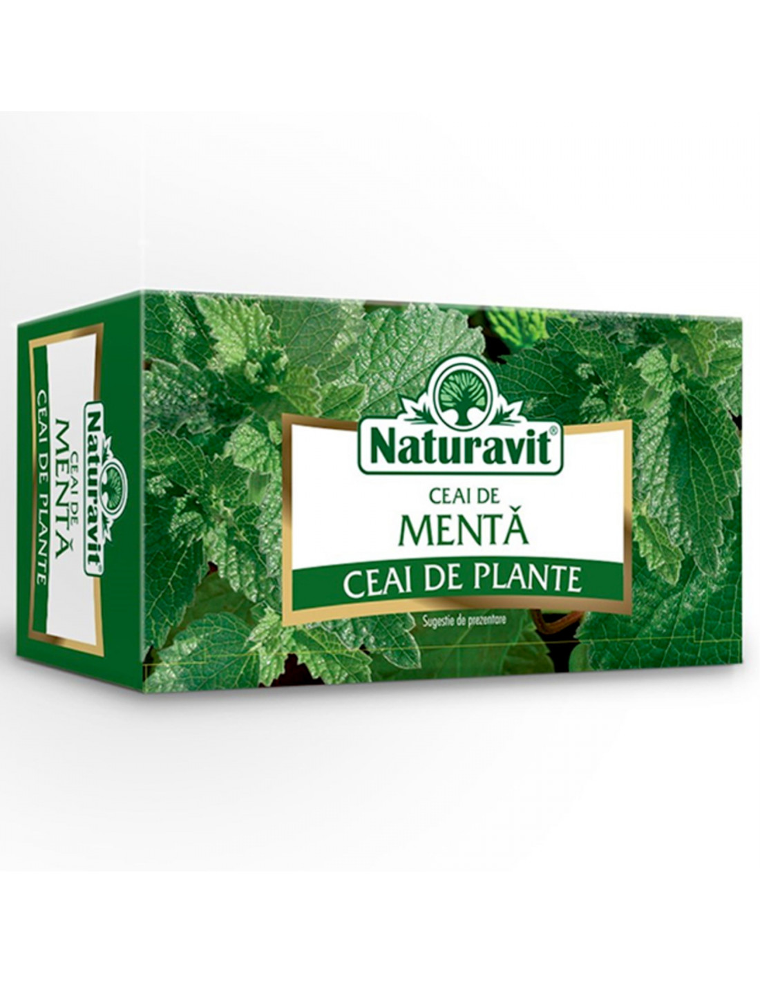 Ceai de Mentă, 20 plicuri, Naturavit este o infuzie aromată și răcoritoare, obținută din frunze de mentă atent selecționate, recunoscute pentru gustul lor intens, proaspăt și plăcut. Ceaiul de mentă este o alegere populară datorită aromei sale caracteristice și ușor mentolate, fiind potrivit pentru consumul zilnic în orice sezon.