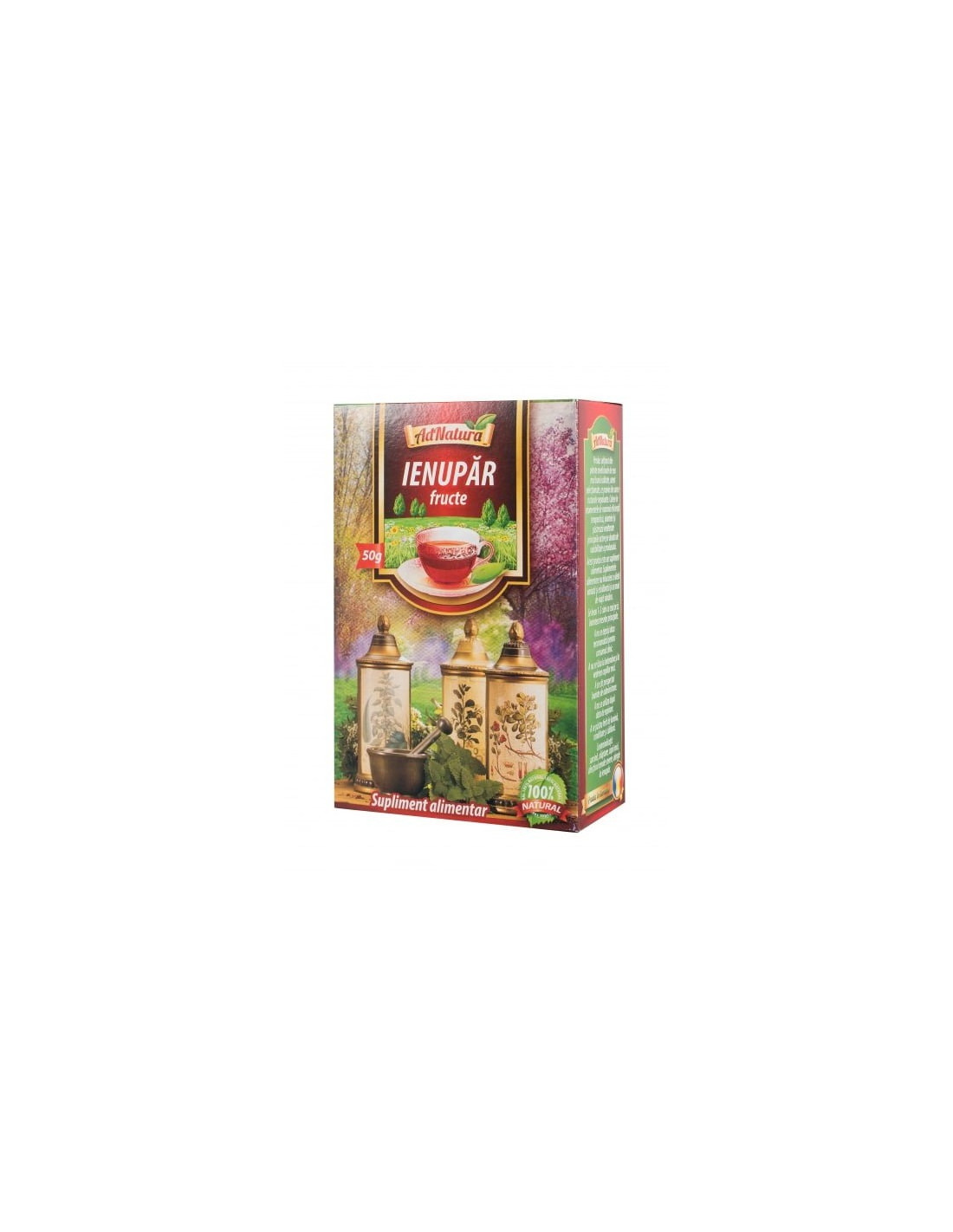 Ceaiul din Fructe de Ienupăr AdNatura este un remediu natural cu acțiune detoxifiantă și diuretică, obținut din fructele plantei Juniperus communis. Este utilizat tradițional pentru susținerea funcției renale, eliminarea toxinelor și stimularea digestiei.