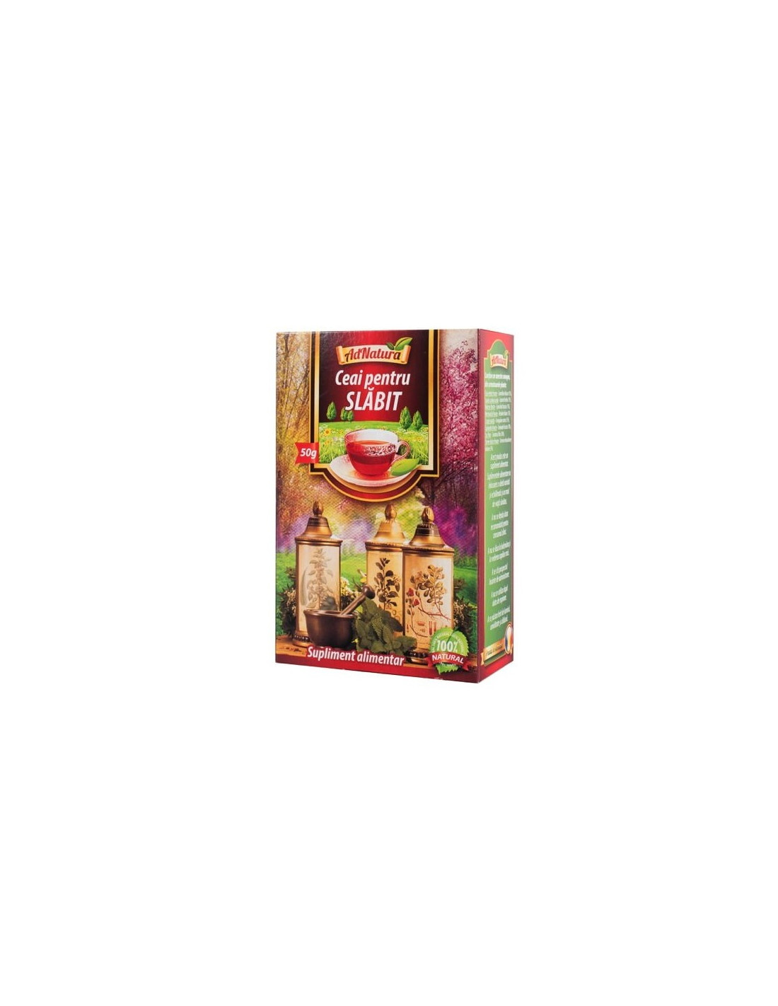 Ceaiul pentru Slăbit de la AdNatura este un amestec echilibrat de plante cu acțiune diuretică, detoxifiantă și stimulatoare a metabolismului. Contribuie la eliminarea retenției de apă, la arderea grăsimilor și la reducerea senzației de foame, fiind un sprijin natural în curele de slăbire.