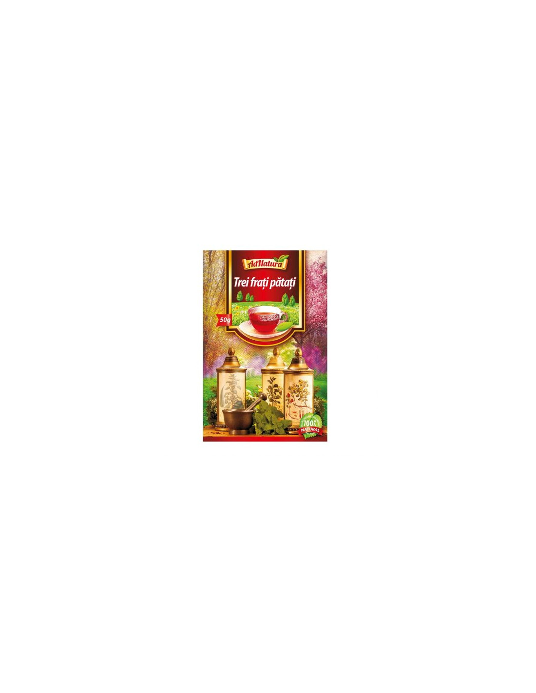 Ceaiul din Trei Frați Pătați AdNatura este un remediu natural cu acțiune depurativă și antiinflamatoare, obținut din planta Viola tricolor. Este recunoscut în fitoterapie pentru efectele sale benefice asupra pielii și asupra proceselor naturale de detoxifiere ale organismului. Consumat regulat, contribuie la curățarea sângelui și la menținerea unui ten curat și sănătos.