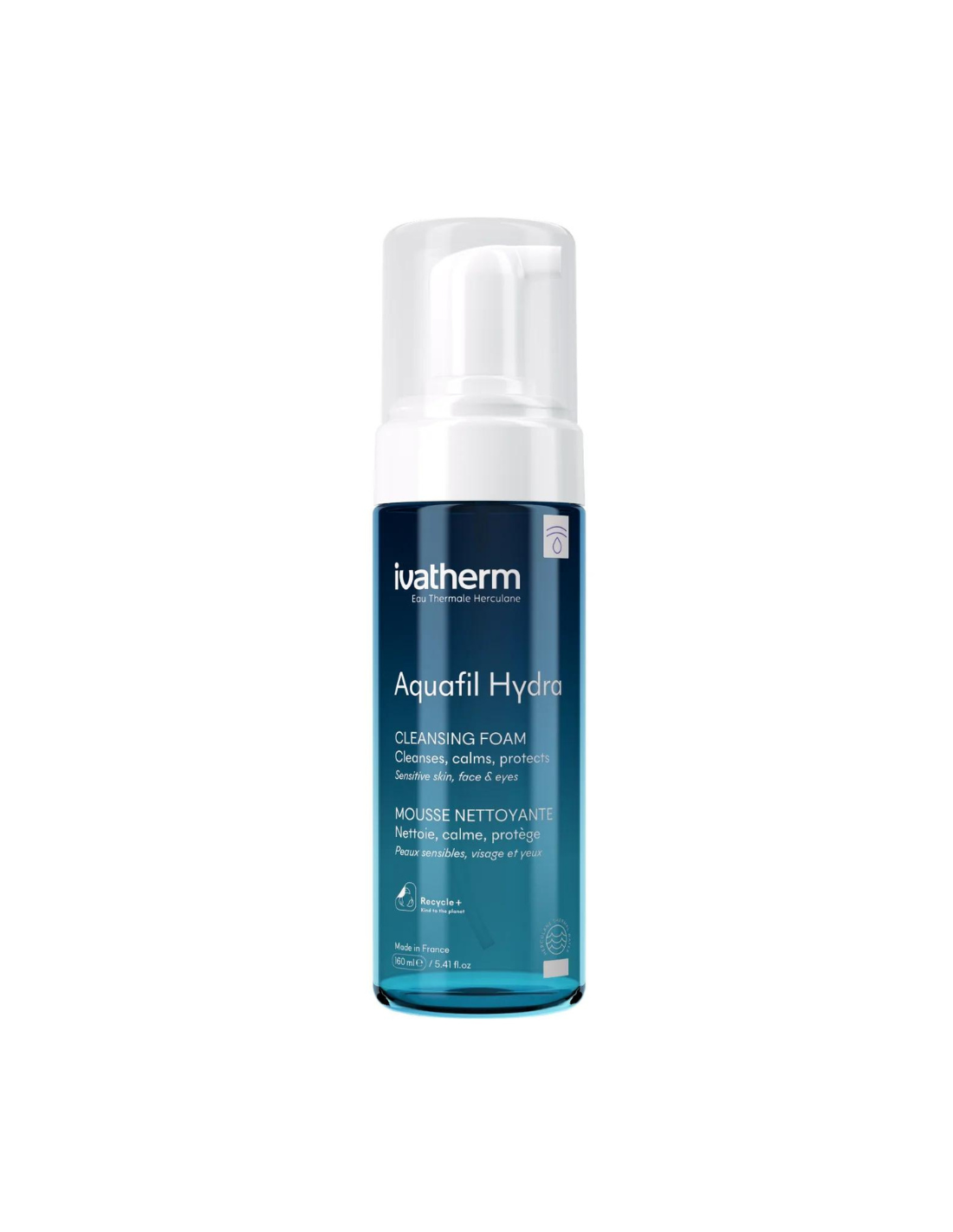 Aquafil Hydra Spumă Demachiantă 160 ml de la Ivatherm este un produs de curățare delicată, conceput pentru a elimina machiajul și impuritățile de pe față, ochi și buze, în timp ce protejează microbiomul pielii. Formula este îmbogățită cu Apă Termală Herculane, cu efect calmant și decongestionant, și este potrivită chiar și pentru pielea foarte sensibilă.