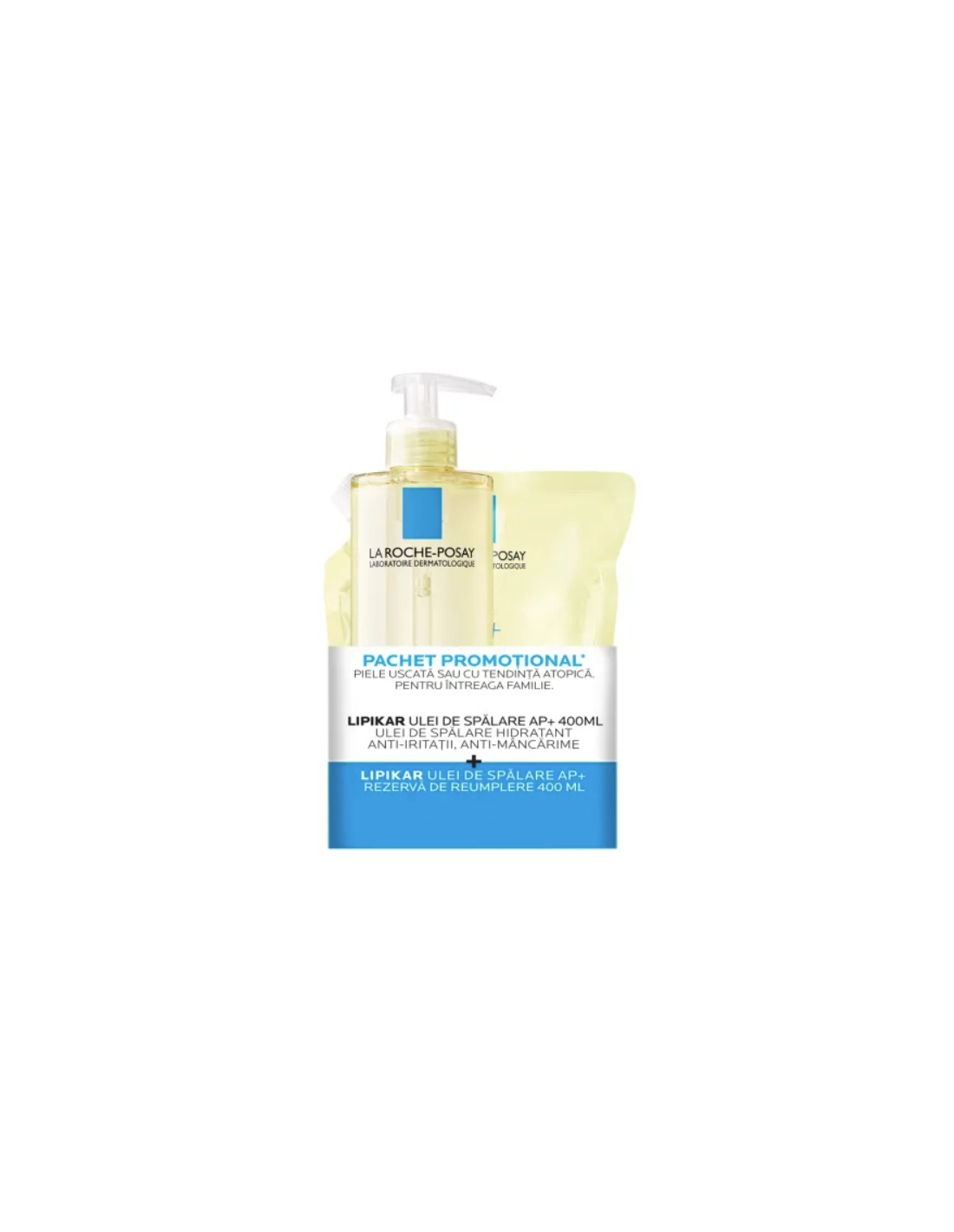 Lipikar Ulei de spalare AP+, 400 ml + rezerva reumplere 400 ml ofera o curatare delicata si o ingrijire completa pentru pielea sensibila si uscata.