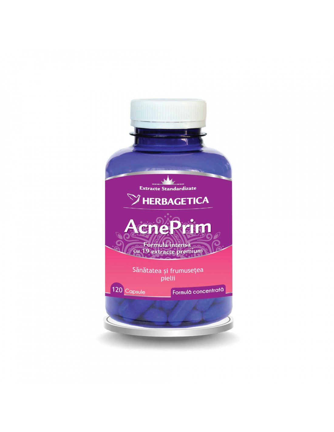 AcnePrim este un supliment premium cu 19 extracte naturale sinergice, conceput pentru a acționa din interior asupra cauzelor acneei hormonale, bacteriene sau inflamatorii. Formula complexă sprijină detoxifierea organismului, echilibrarea hormonală, digestia și reducerea inflamației pielii.