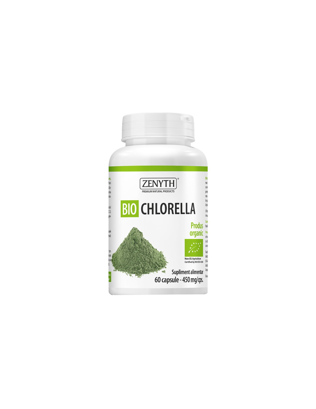 Bio Chlorella – 60 capsule, Zenyth este un supliment alimentar organic, 100 % natural, care conține chlorella (*Chlorella vulgaris*) într-o formulă pură, fără aditivi sau coloranți.