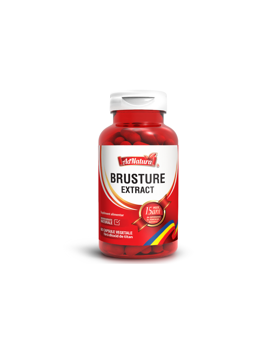 AdNatura Brusture extract – 60 capsule este un supliment alimentar natural cu efect detoxifiant, depurativ și purificator al organismului. Extractul de rădăcină de brusture (Arctium lappa) contribuie la eliminarea toxinelor, susținând funcționarea normală a ficatului, rinichilor și pielii.