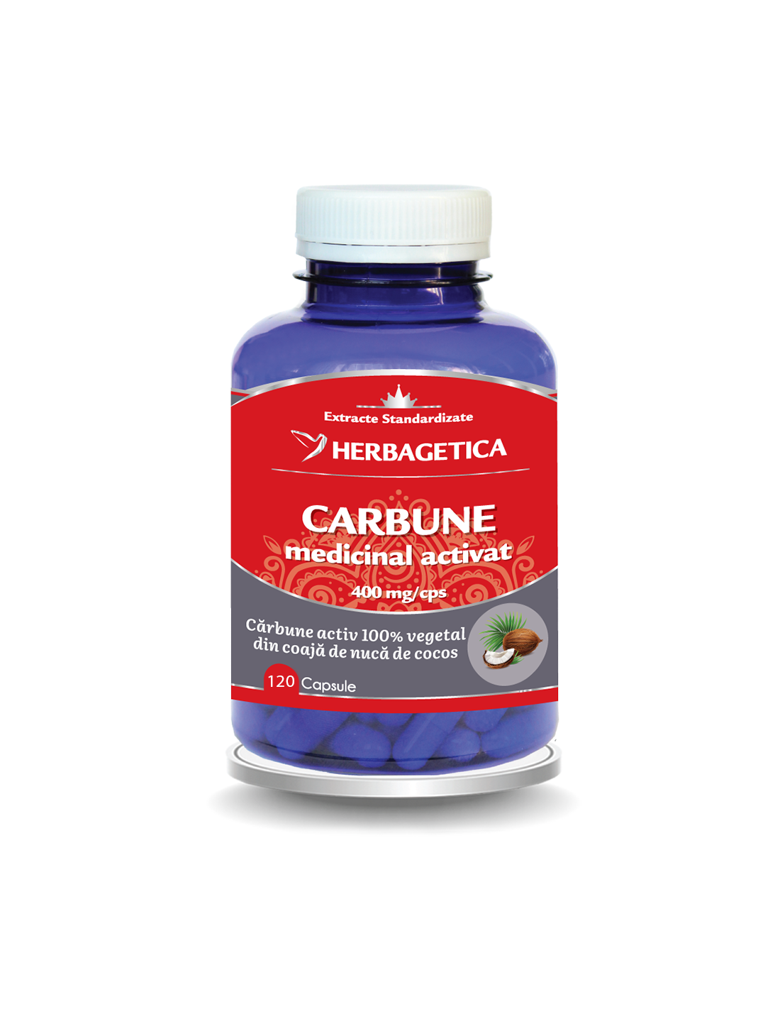 Cărbune Activat Medicinal este un supliment 100% natural obținut din cojile nucilor de cocos, oferind câte 400 mg de cărbune activat per capsulă pentru reducerea balonării, flatulenței și susținerea confortului digestiv.