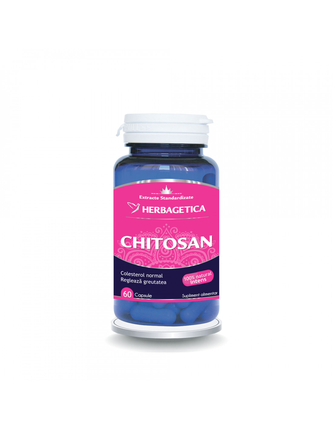 Chitosan este un supliment natural cu fibre active cu sarcină pozitivă, ideal pentru controlul greutății, reducerea colesterolului și protejarea sistemului digestiv.