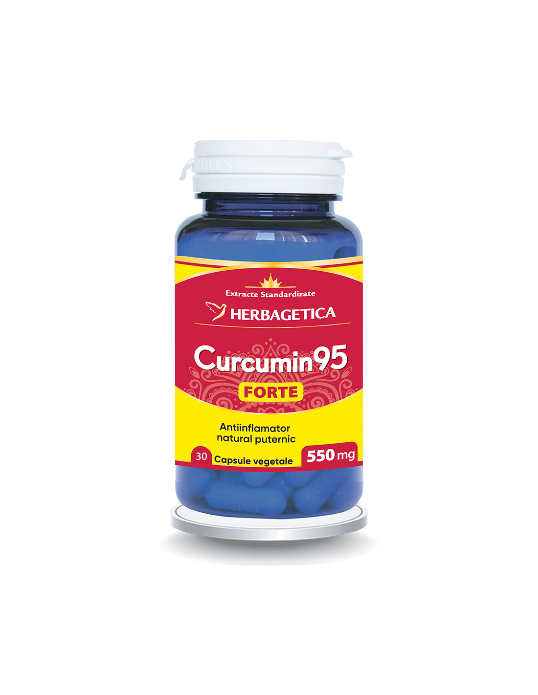 • Curcumin95 C3 complex (Curcuma longa) – 550 mg, extract standardizat la 95% curcuminoide