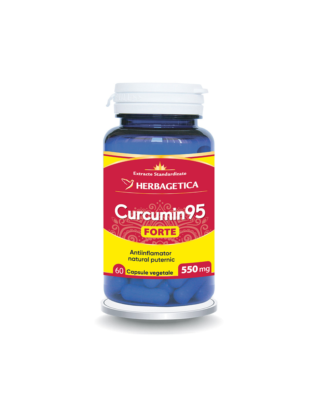 Curcumin95 Forte este un supliment alimentar cu concentrație ridicată de Curcumin95 C3 complex, formulat pentru a susține natural organismul în combaterea inflamației, protecția celulelor împotriva stresului oxidativ și menținerea sănătății articulațiilor, ficatului și sistemului cardiovascular.