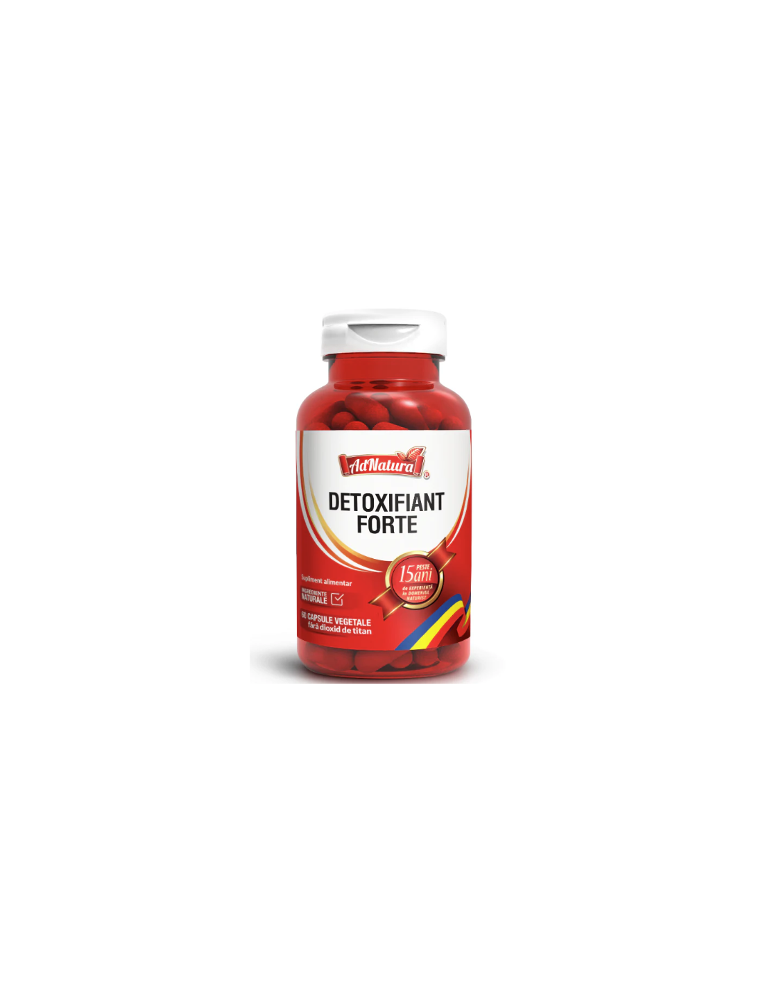 AdNatura Detoxifiant Forte – 60 capsule este un supliment alimentar complex, formulat din extracte naturale ce sprijină detoxifierea organismului și funcționarea normală a ficatului, rinichilor și tractului digestiv. Recomandat în perioadele de oboseală, alimentație dezechilibrată sau cure de purificare.