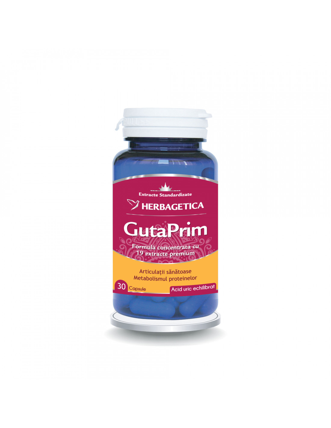 GutaPrim are o formulă complexă, bazată exclusiv pe extracte naturale superioare, care acționează sinergic pentru a drena excesul de fluide și acid uric, a calma inflamația și a ajuta la refacerea mobilității articulațiilor afectate de gută și hiperuricemie.