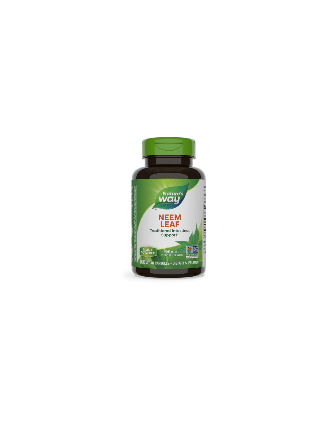 Neem Leaf – 100 capsule vegetale (Nature’s Way) este un supliment pe bază de extract de frunze de neem (Azadirachta indica), utilizat tradițional în medicina ayurvedică ca un tonic „purificator” ce susține detoxifierea, imunitatea și sănătatea pielii.*