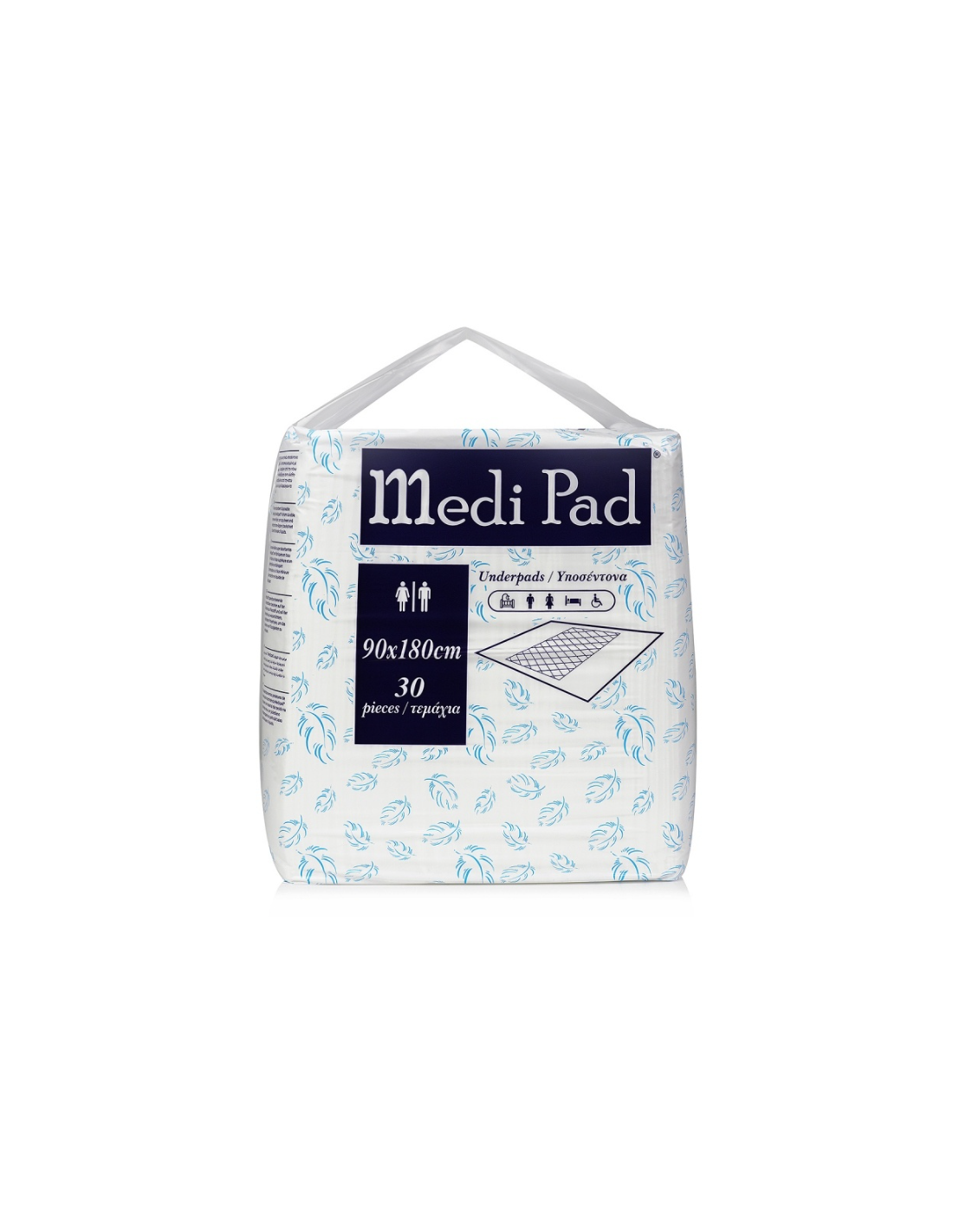 Traverse absorbante 90 × 180 cm, 30 bucăți, Medi Pad sunt protecții de unică folosință destinate menținerii igienei și protejării patului, saltelei sau mobilierului împotriva umezelii și murdăriei.