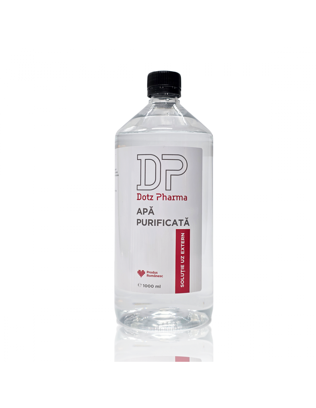 Apă purificată Dotz Pharma 1 L este procesată prin metode avansate de purificare, precum deionizare, osmoză inversă și filtrare, pentru a elimina complet impuritățile organice și anorganice. Produsul respectă cerințele aferente apei destinate uzului farmaceutic.