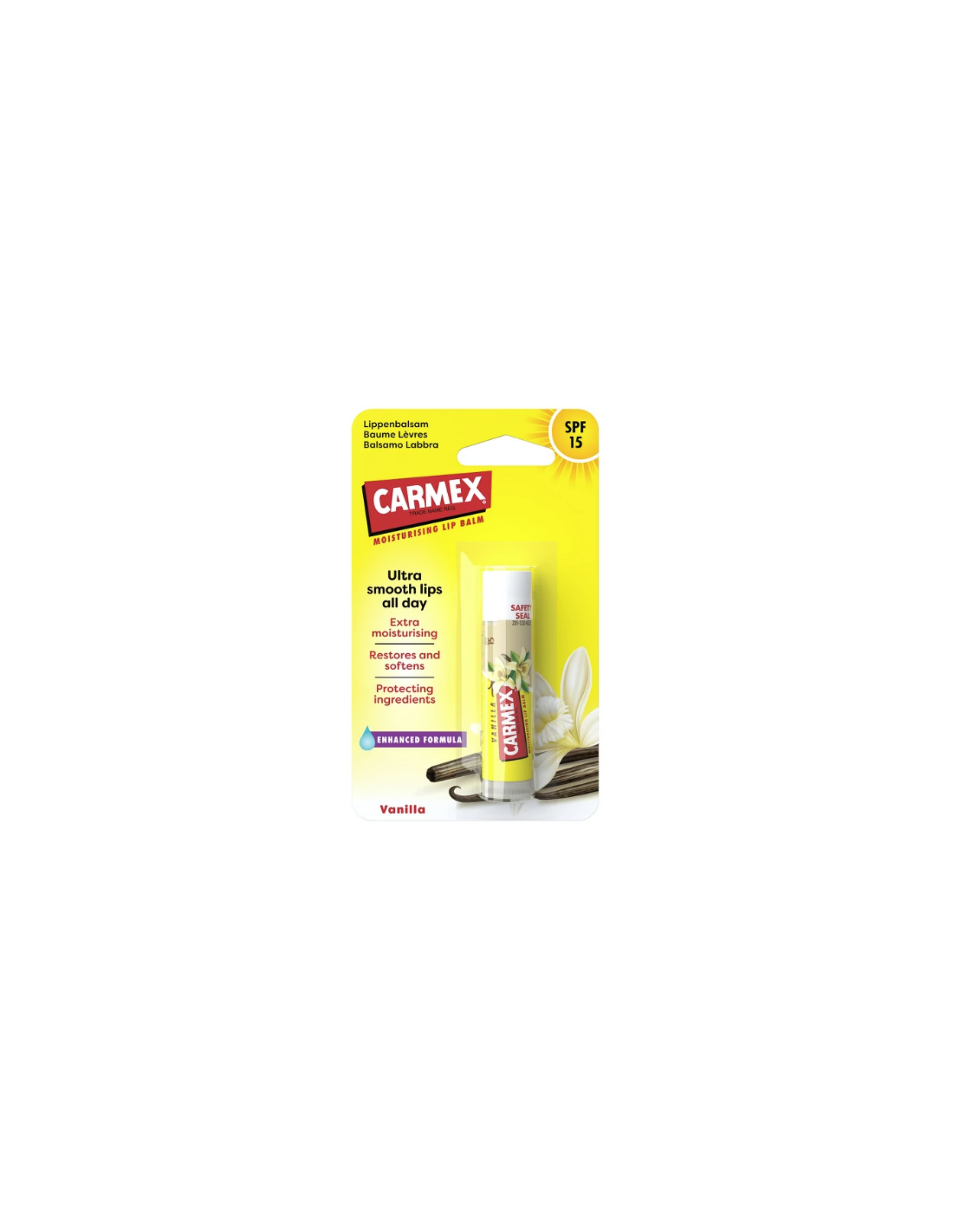 Carmex Vanilla Lip Balm Stick 4,25 g este un balsam classic cu aromă subtilă de vanilie, conceput pentru a hidrata și proteja buzele uscate, crăpate sau expuse la factorii externi. Combinația de ingrediente nutritive și emoliente oferă confort și protecție de lungă durată.