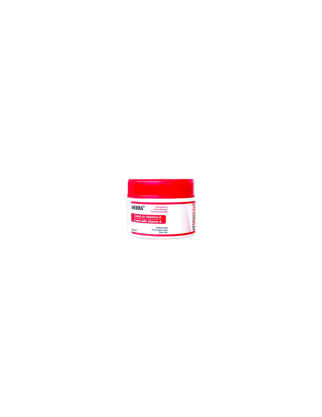 Crema cu Vitamina A, 45 ml – Mebra este o cremă regenerantă concepută pentru îngrijirea pielii uscate, atone sau descuamate, acționând prin aportul de retinol (vitamina A) și agenți emolienți pentru a îmbunătăți textura și elasticitatea pielii.