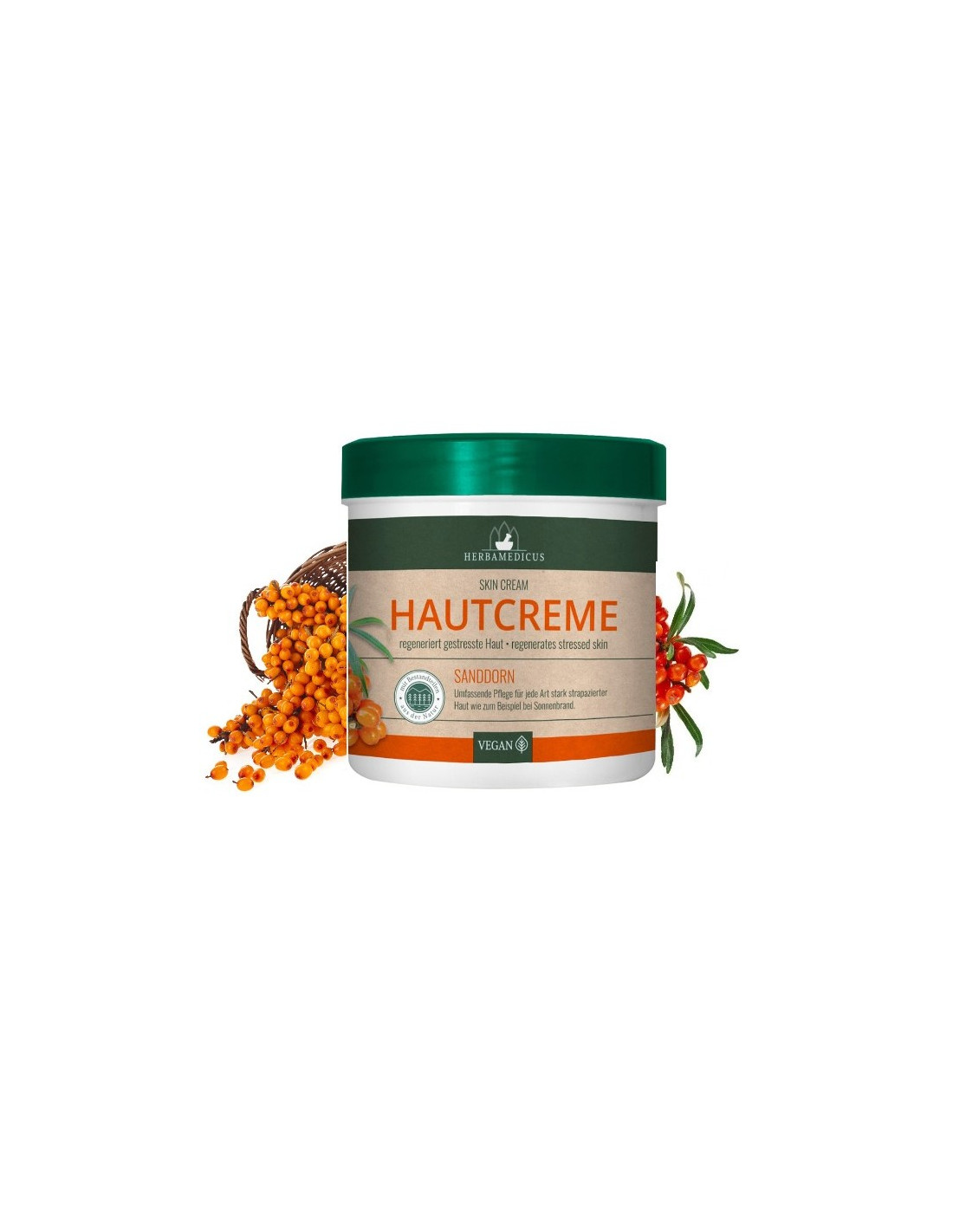 Cremă naturală Herbamedicus cu extract de cătină (Sea Buckthorn), bogată în vitamine, anti-oxidanți și nutrienți naturali. Destinată îngrijirii pielii uscate sau afectate, pentru regenerare și hidratare intensă. Perfectă pentru față și corp, după expunere la soare, vreme rece sau factori agresivi de mediu.