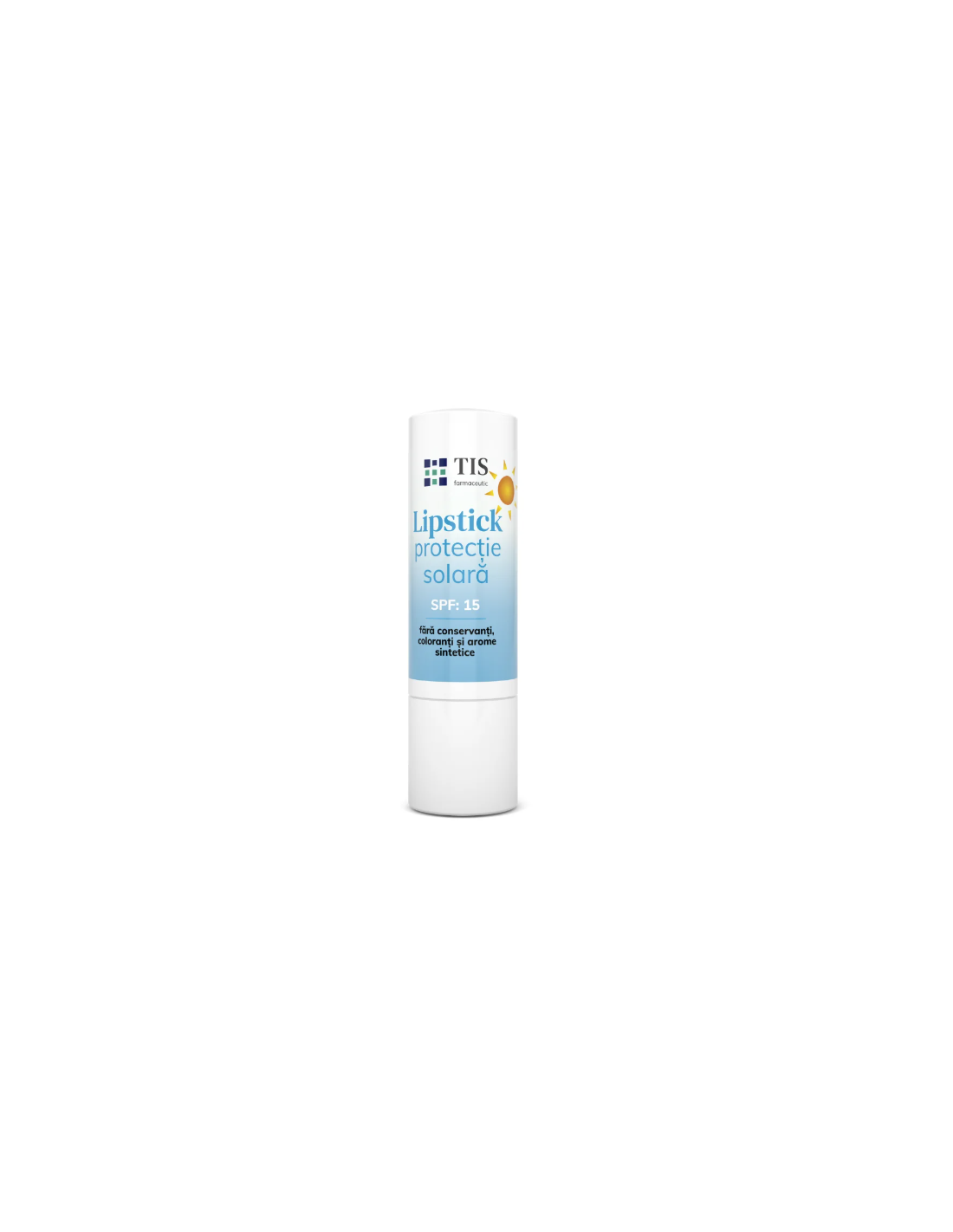 Stick de buze / lipstick protector, 4 g. Brand: TIS Farmaceutic. Potrivit pentru utilizarea zilnică cu protecție SPF 15.