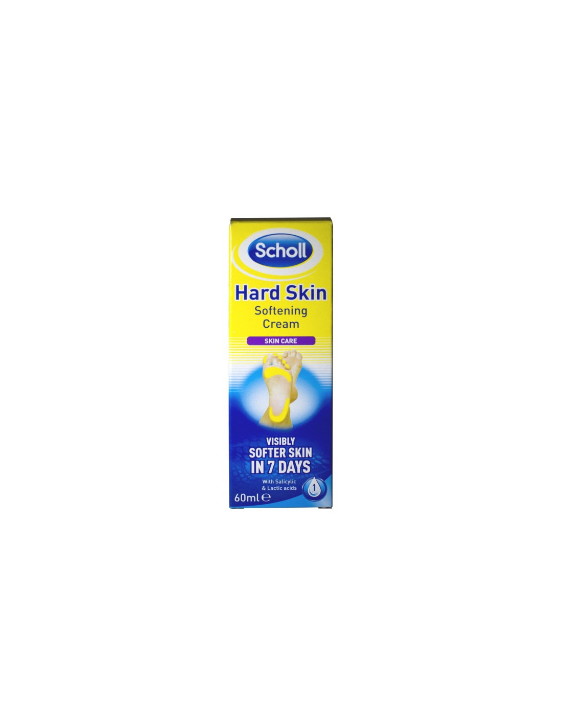 Scholl Hard Skin Softening Cream 60 ml este o cremă special formulată pentru zonele cu piele îngroșată sau întărită, cum ar fi talpa, călcâiele, degetele picioarelor. Formula sa conține acid salicilic și acid lactic, care acționează pentru a înmuia stratul exterior al pielii întărite și a dezvălui celulele mai fine și sănătoase dedesubt.