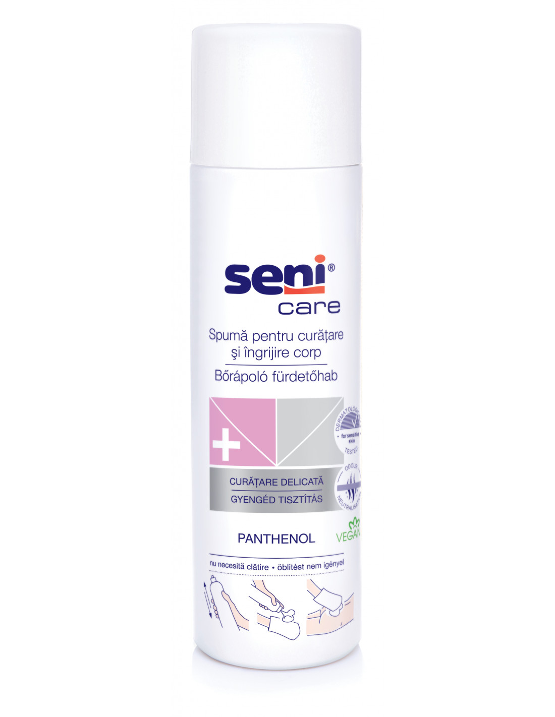 Seni Care Spuma ingrijire corp 500 ml este solutia ideala pentru curatarea delicata si ingrijirea pielii sensibile, oferind igiena eficienta fara utilizarea apei.