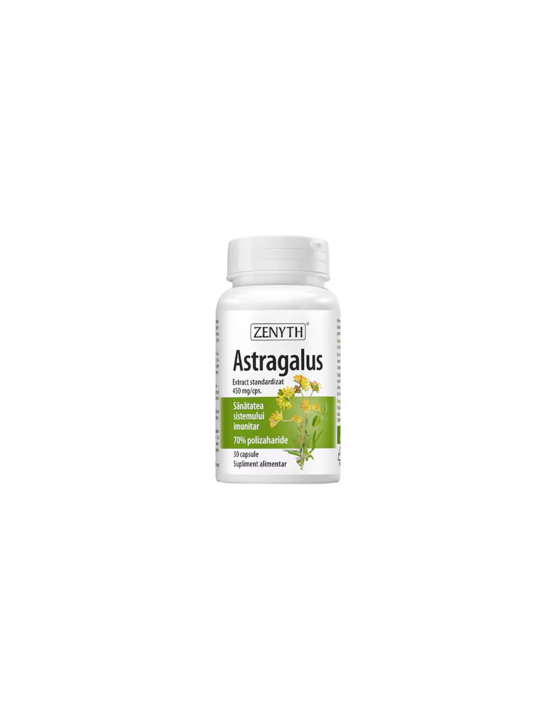 Astragalus 450 mg – 30 capsule, Zenyth este un supliment alimentar pe bază de extract standardizat din rădăcina de Astragalus membranaceus, recunoscut pentru proprietățile sale de tonic și adaptogen.