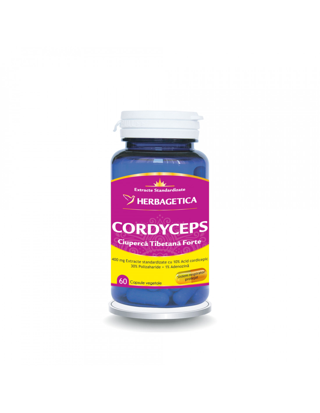 Cordyceps – Ciuperca Tibetană Forte oferă o combinație unică de extracte standardizate, garantând un conținut crescut de principii active: acid cordicepic, polizaharide și adenozină.