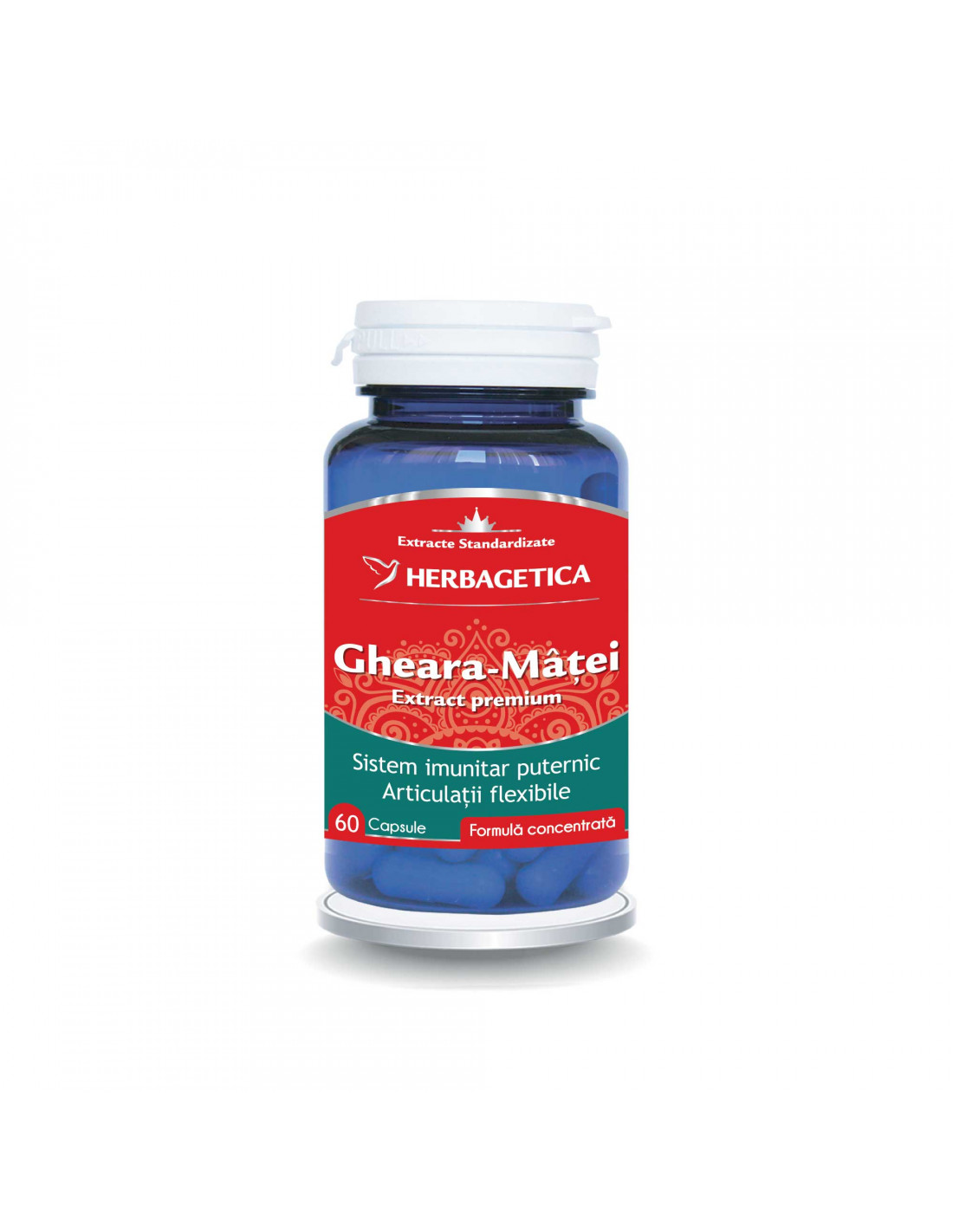 Gheara matei este recunoscută în fitoterapie pentru capacitatea sa de a reduce inflamația cronică, de a calma durerile articulare și de a îmbunătăți flexibilitatea. În plus, susține diviziunea celulară normală și stimulează mecanismele de apărare ale organismului, fiind utilă în perioade de imunitate scăzută sau inflamații recurente.