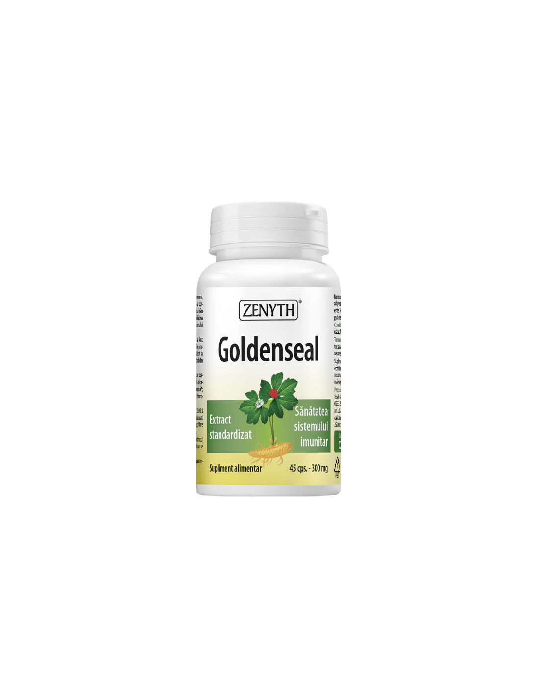 Goldenseal 300 mg – 45 capsule, Zenyth este un supliment alimentar cu extract standardizat din rădăcină de Hydrastis canadensis (Goldenseal), cunoscut pentru proprietățile sale antimicrobiene și imunostimulatoare.