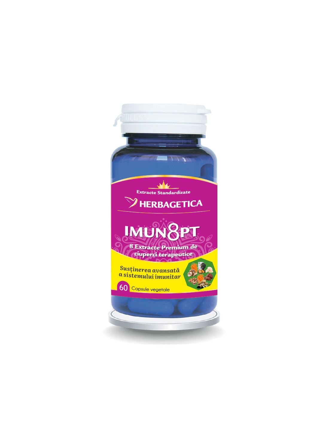 Imunopt – Herbagetica este un complex unic cu 500 mg de extracte premium de ciuperci terapeutice, formulate pentru susținerea sistemului imunitar, creșterea rezistenței la infecții și reducerea oboselii. Conține 8 extracte puternice cu efecte imunomodulatoare, antioxidante, antivirale și revitalizante.
