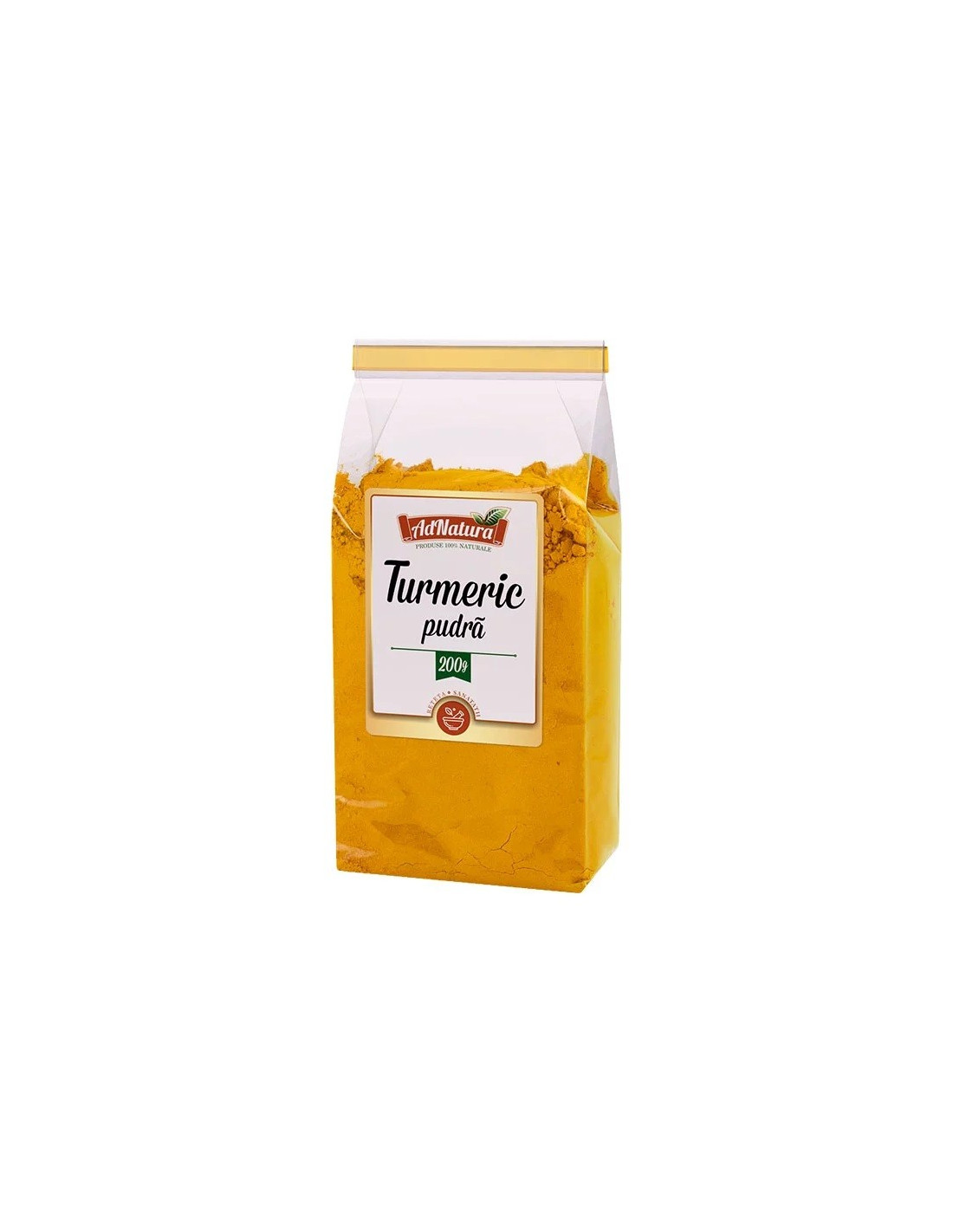 Turmeric Pudră 200 g de la AD NATURA este un produs 100 % natural, obținut prin măcinarea fină a rădăcinii de Curcuma longa. Cunoscut și sub denumirea de „aurul indian”, turmericul este unul dintre cele mai puternice condimente terapeutice, folosit de mii de ani în medicina ayurvedică pentru proprietățile sale antioxidante, antiinflamatorii și detoxifiante.