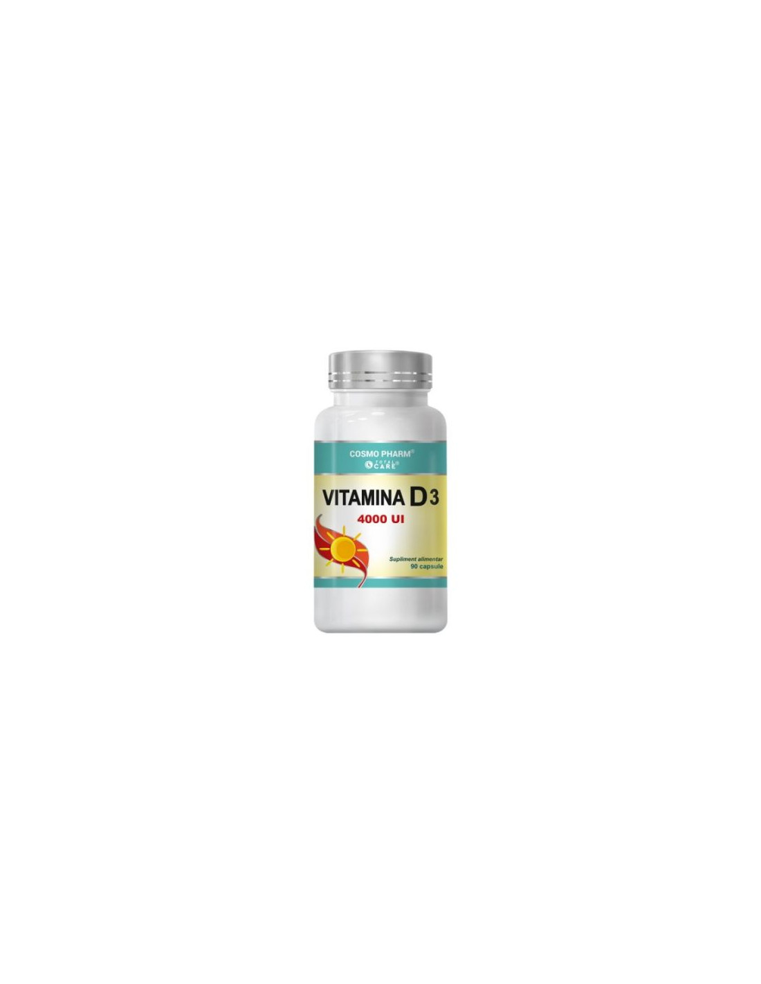 Vitamina D3 4000 UI – 90 capsule este un supliment alimentar formulat de Cosmopharm, cu scopul de a oferi un aport ridicat de vitamina D3, benefică pentru sistemul imunitar, sănătatea oaselor și metabolismul calciului.