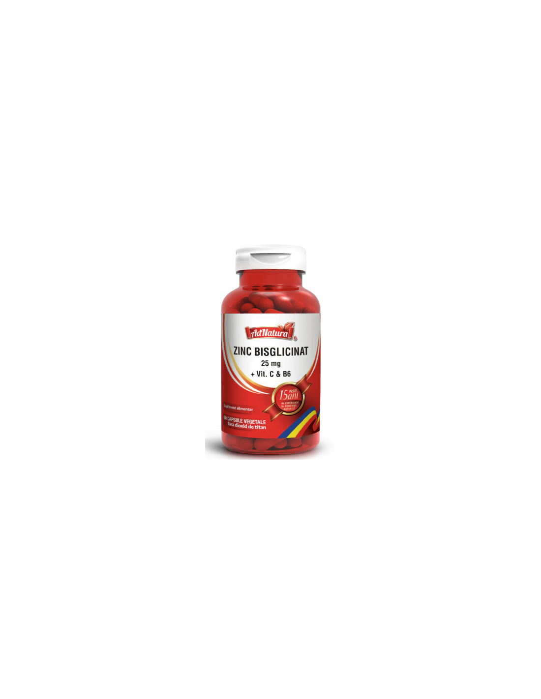 - Zinc (sub formă de bisglicinat de zinc) – 25 mg (250% VNR)