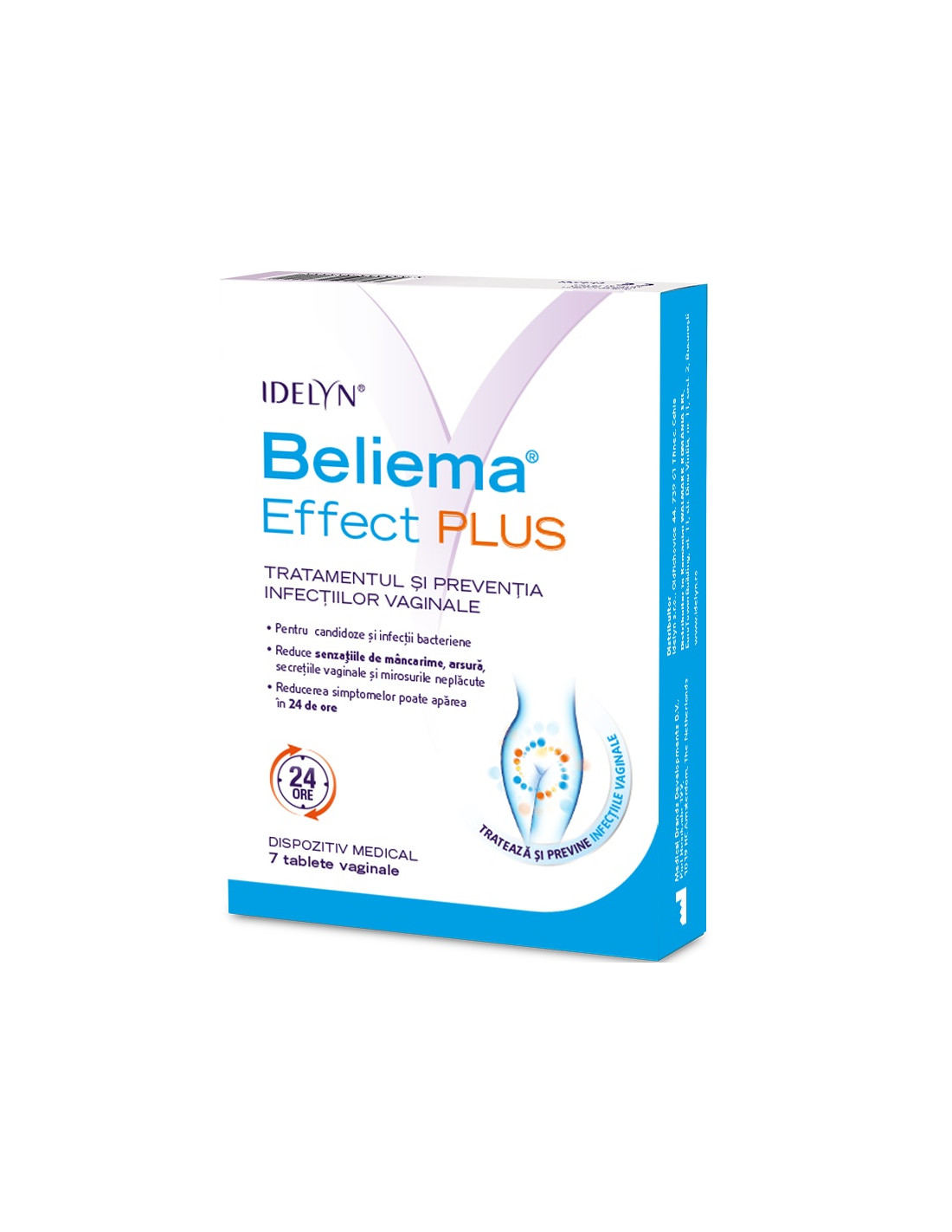 Beliema Idelyn Effect Plus 7 tablete vaginale este un produs destinat îngrijirii intime, utilizat pentru ameliorarea și prevenirea simptomelor disconfortului vaginal, precum mâncărime, arsură, secreții anormale și miros neplăcut.