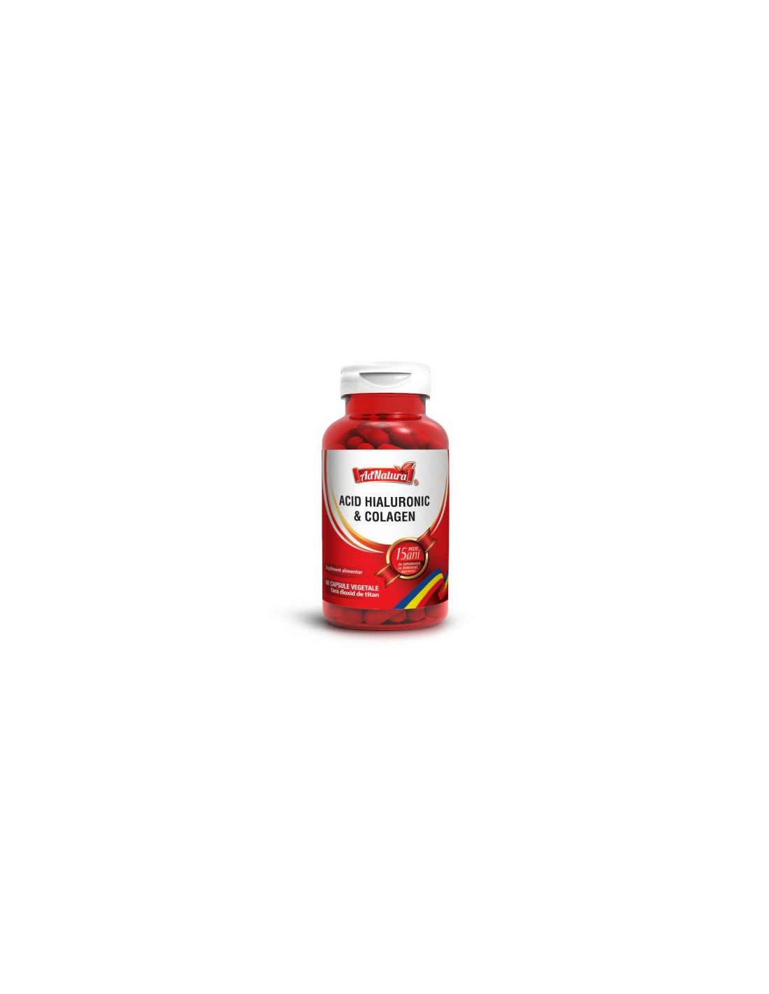 AdNatura Acid Hialuronic & Colagen – 60 capsule este un supliment alimentar natural ce contribuie la menținerea elasticității și fermității pielii, la hidratarea profundă a țesuturilor și la susținerea sănătății articulațiilor. Formula combină acidul hialuronic și colagenul – două componente esențiale pentru frumusețea pielii și mobilitatea articulară.