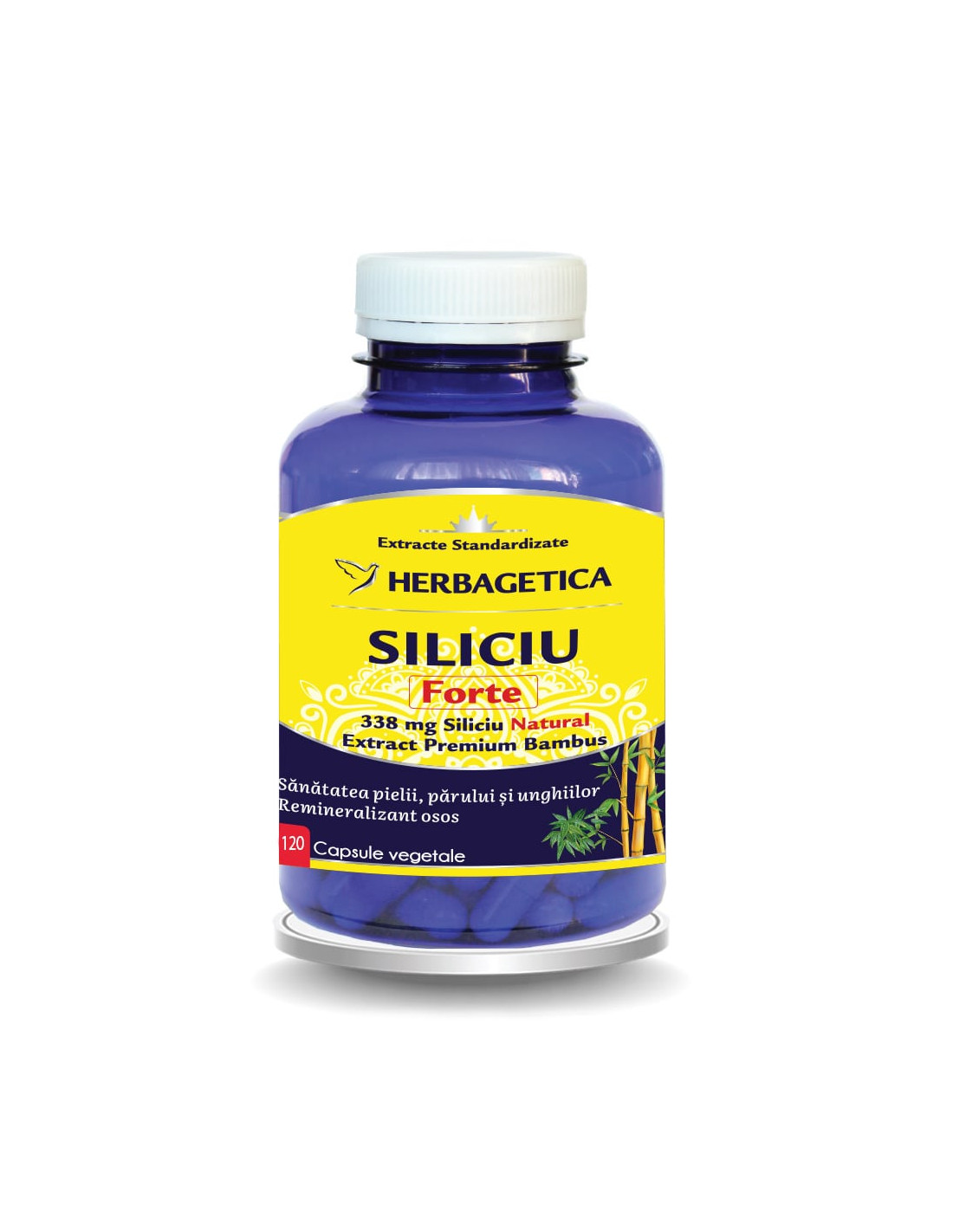 Siliciu Forte este o formulă premium cu 338 mg Siliciu natural per capsulă, extras din bambus, ideală pentru elasticitatea pielii, sănătatea părului, unghiilor și oaselor.