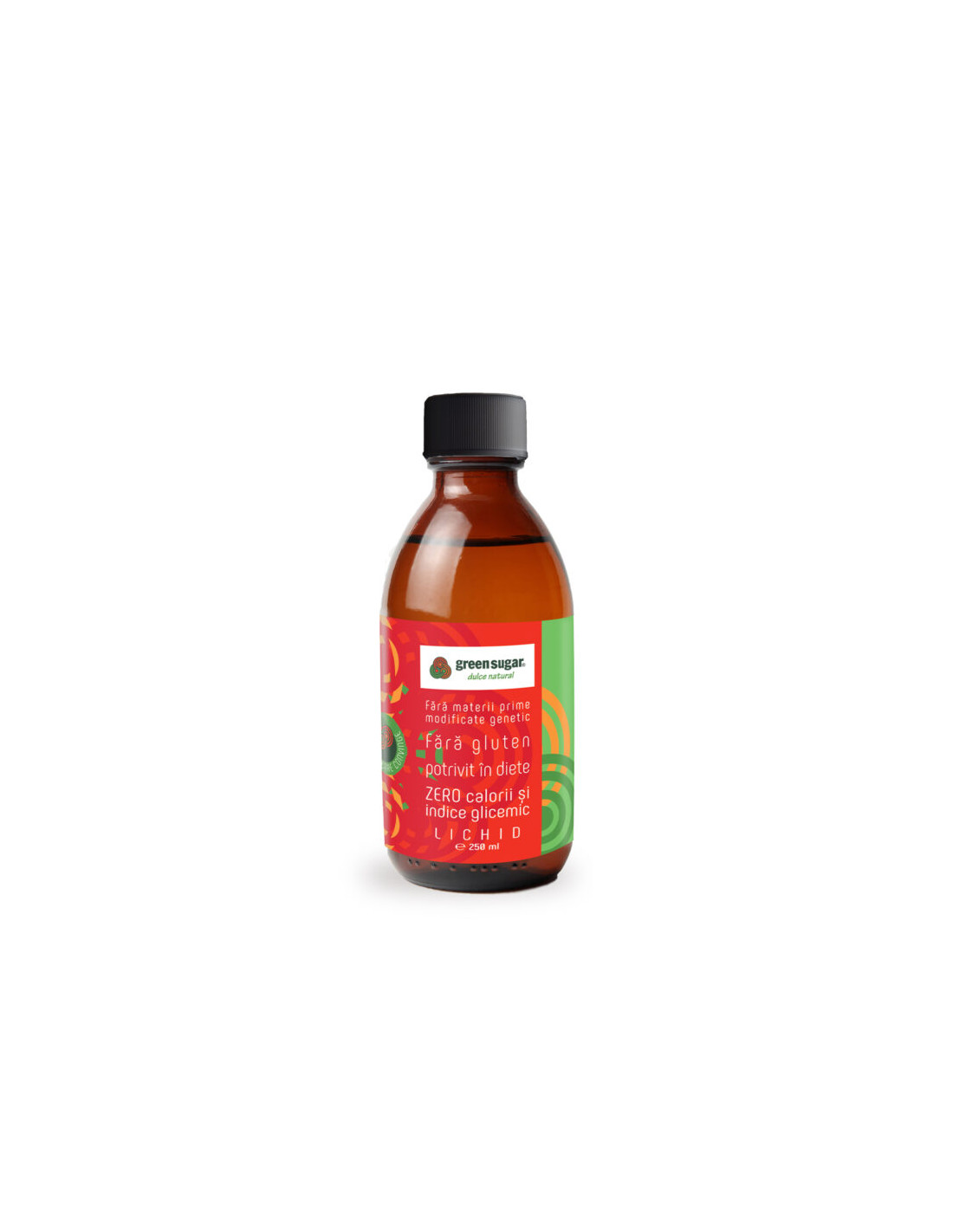 Green Sugar lichid 250 ml este un îndulcitor 100 % natural dezvoltat de Laboratoarele Remedia. Combinația de extract de Stevia Rebaudiana și eritritol oferă gust dulce, fără calorii, fără zahăr adăugat și cu impact minim asupra glicemiei.