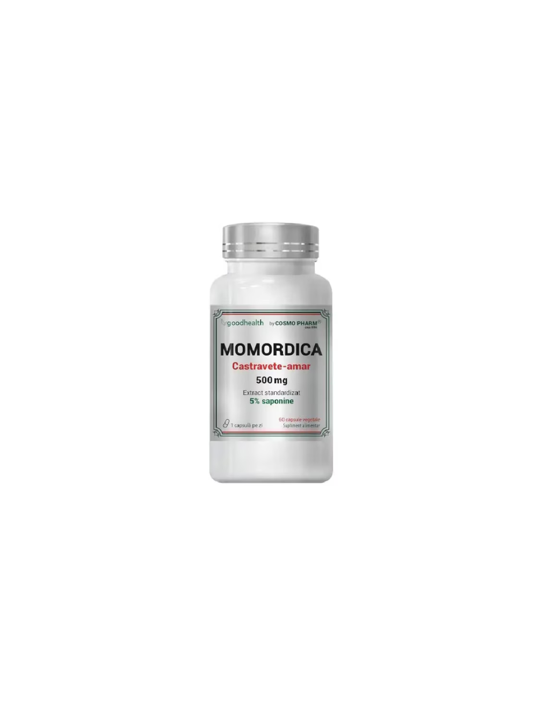 Momordica 500 mg – 60 capsule vegetale este un supliment alimentar ce conține extract din fructe de castravete-amar (Momordica charantia), standardizat la minimum 5 % saponine.