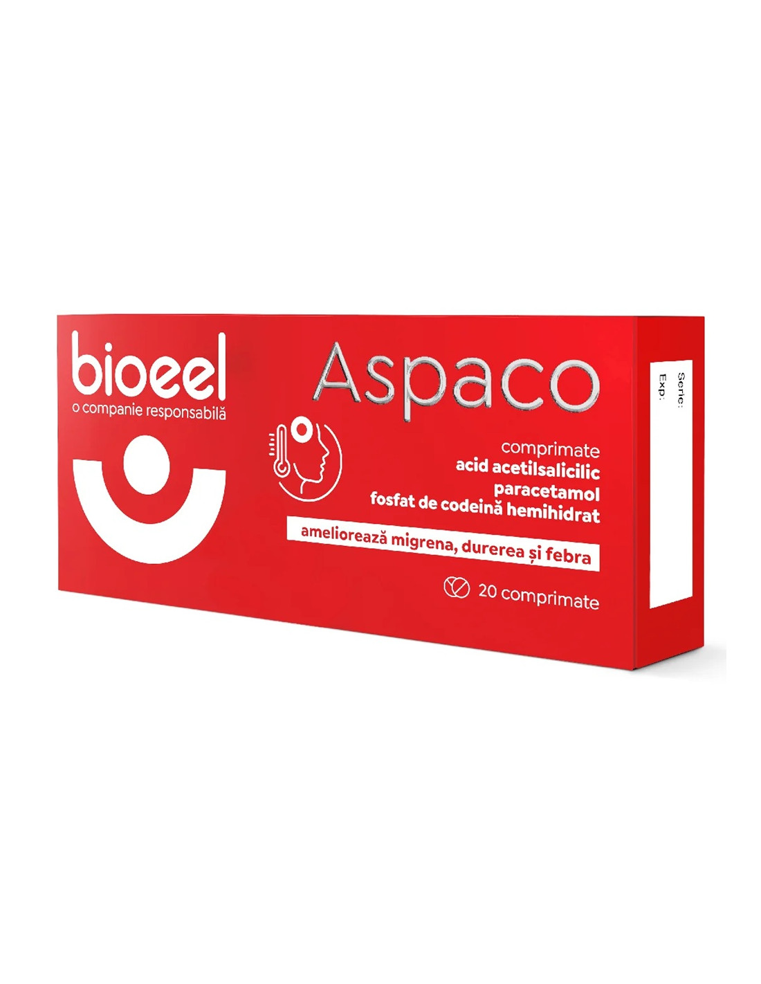 Aspaco, produs de Bioeel, este un medicament analgezic și antipiretic utilizat pentru tratamentul durerilor ușoare până la moderate și pentru reducerea febrei. Acesta conține o combinație de acid acetilsalicilic, paracetamol și cafeină, având acțiune sinergică asupra durerii și febrei.