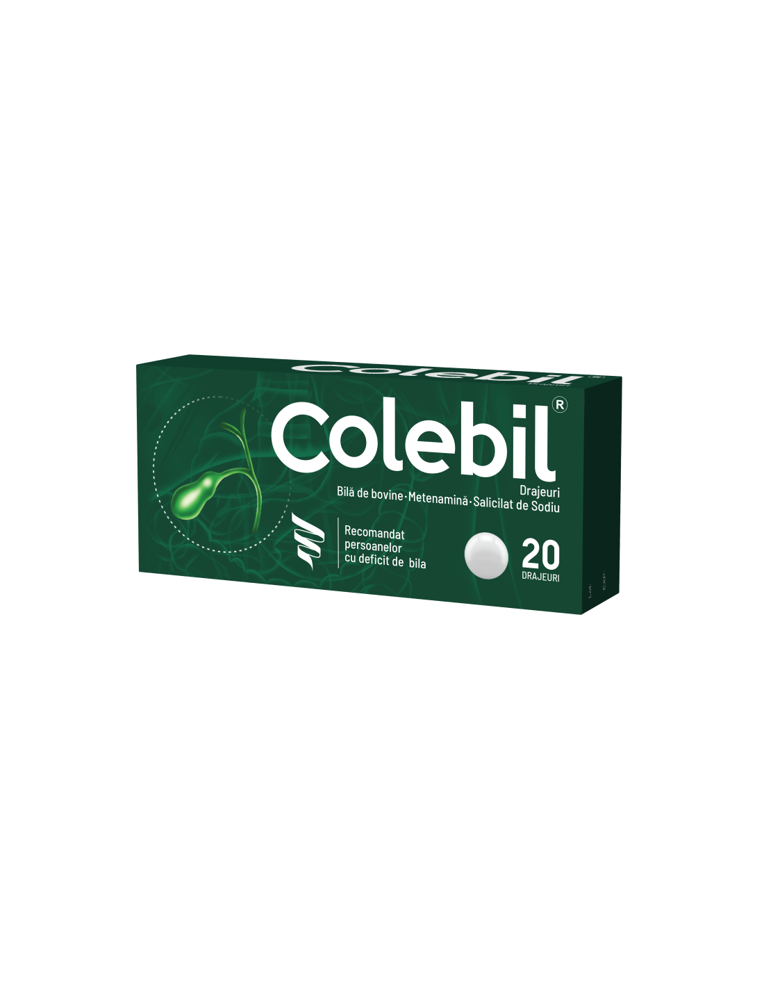 Colebil 20 drajeuri este un medicament OTC produs de Biofarm, utilizat ca adjuvant în tulburările dispeptice apărute pe fondul deficitului de bilă în intestin, precum și în constipația cronică. Acționează prin stimularea secreției biliare și îmbunătățirea digestiei grăsimilor.