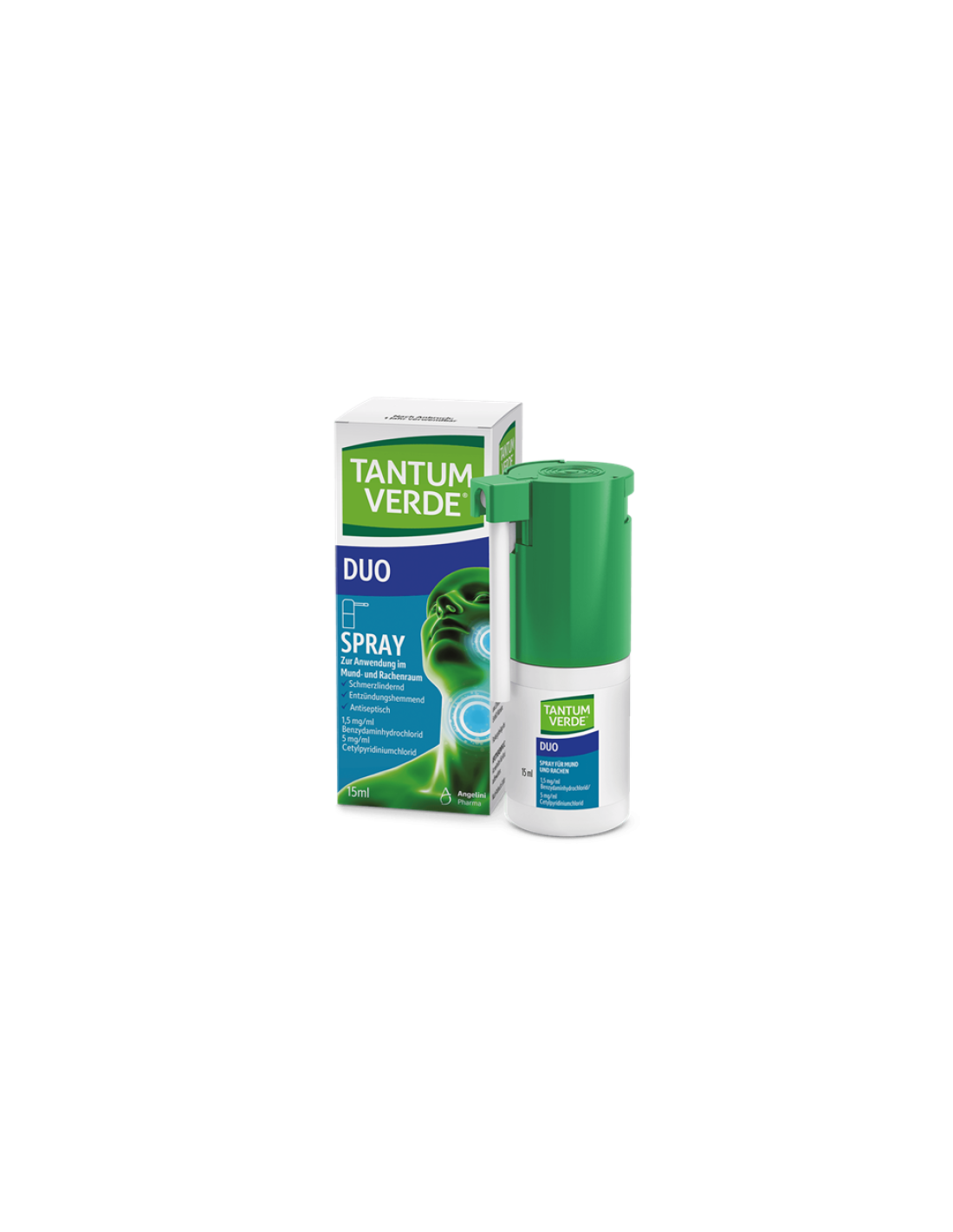 Tantum Verde Duo este un spray bucofaringian cu acțiune antiinflamatoare și antiseptică, destinat ameliorării rapide a durerii și iritației la nivelul gâtului, gurii și gingiilor.