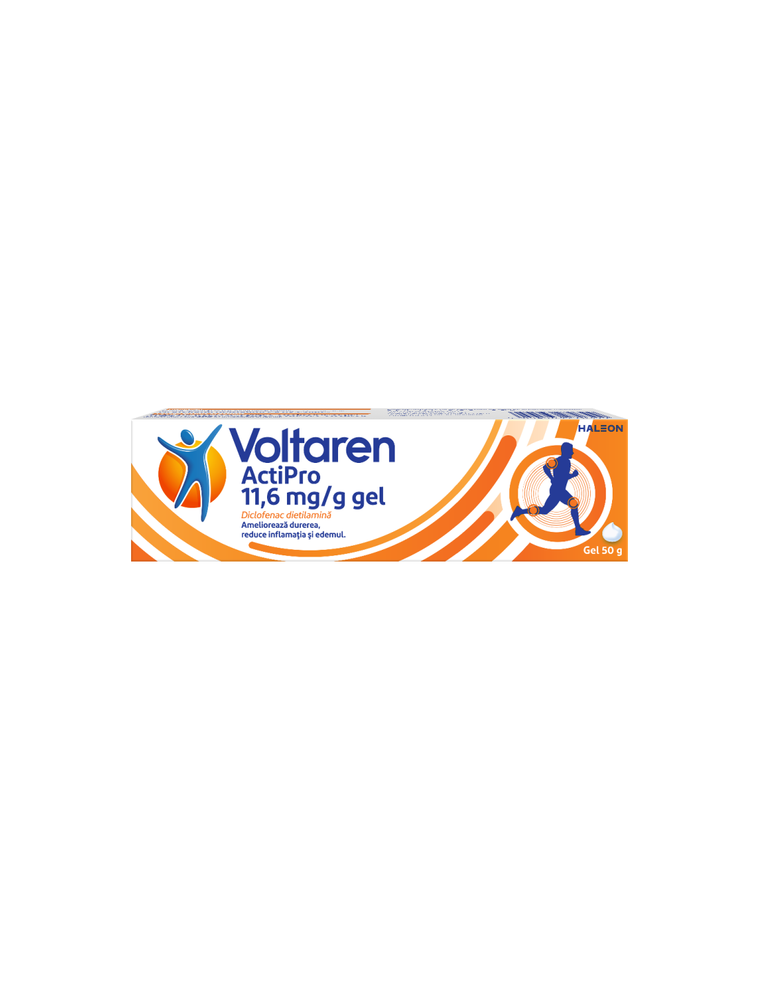Voltaren ActiPro este un gel antiinflamator și analgezic pe bază de diclofenac dietilamină 11,6 mg/g, destinat ameliorării durerilor musculare, articulare și inflamațiilor locale. (Variantă de 50 g)