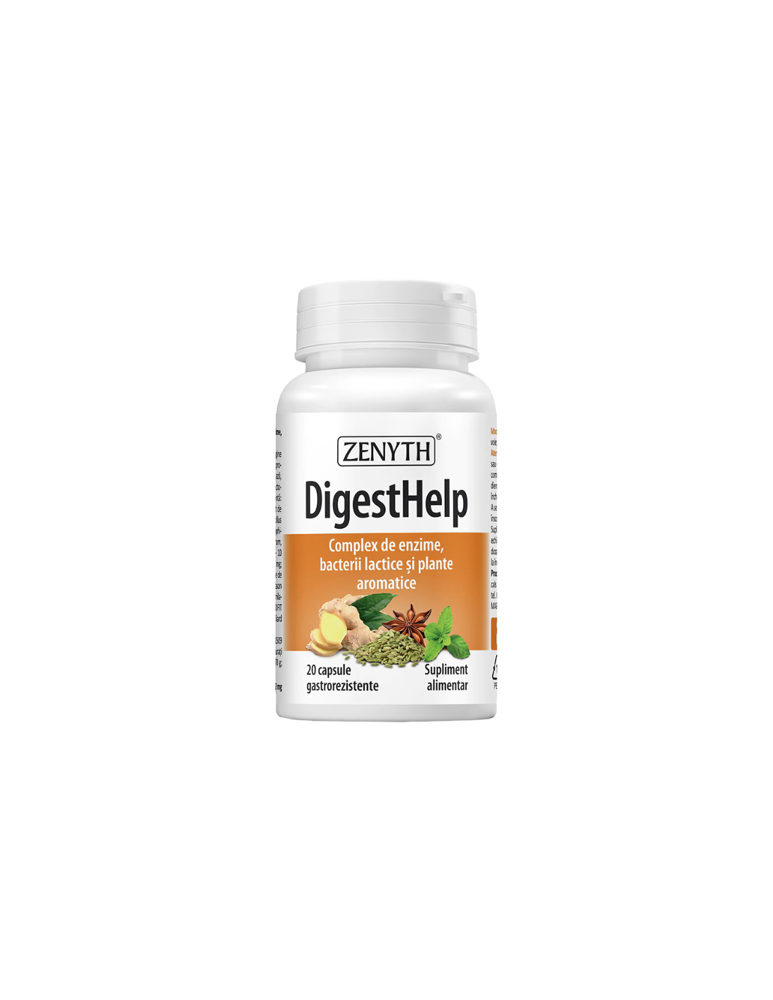 DigestHelp – 20 capsule gastrorezistente, Zenyth este un supliment alimentar conceput pentru a susține digestia și a ameliora diverse simptome digestive neplăcute.