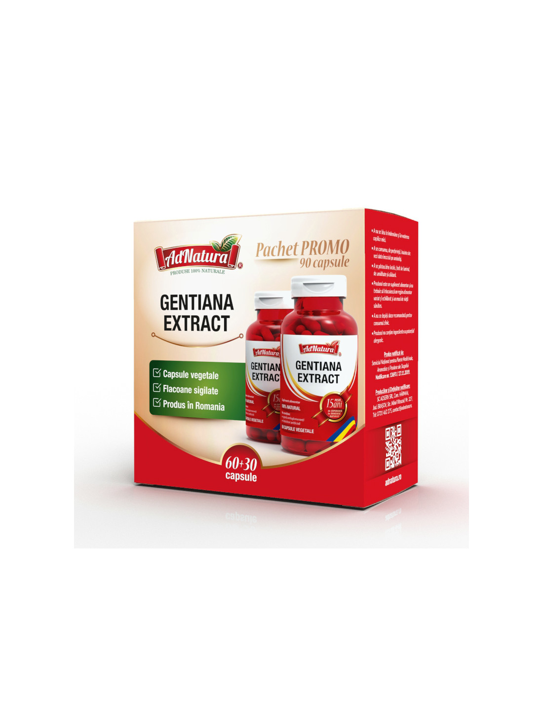 AdNatura Gentiana extract – pachet 60 + 30 capsule este un supliment alimentar pe bază de extract concentrat din rădăcină de Gentiana lutea, cunoscută pentru proprietățile sale tonice, digestive și hepatoprotectoare. Este recomandat pentru stimularea poftei de mâncare, secreției gastrice și biliare.