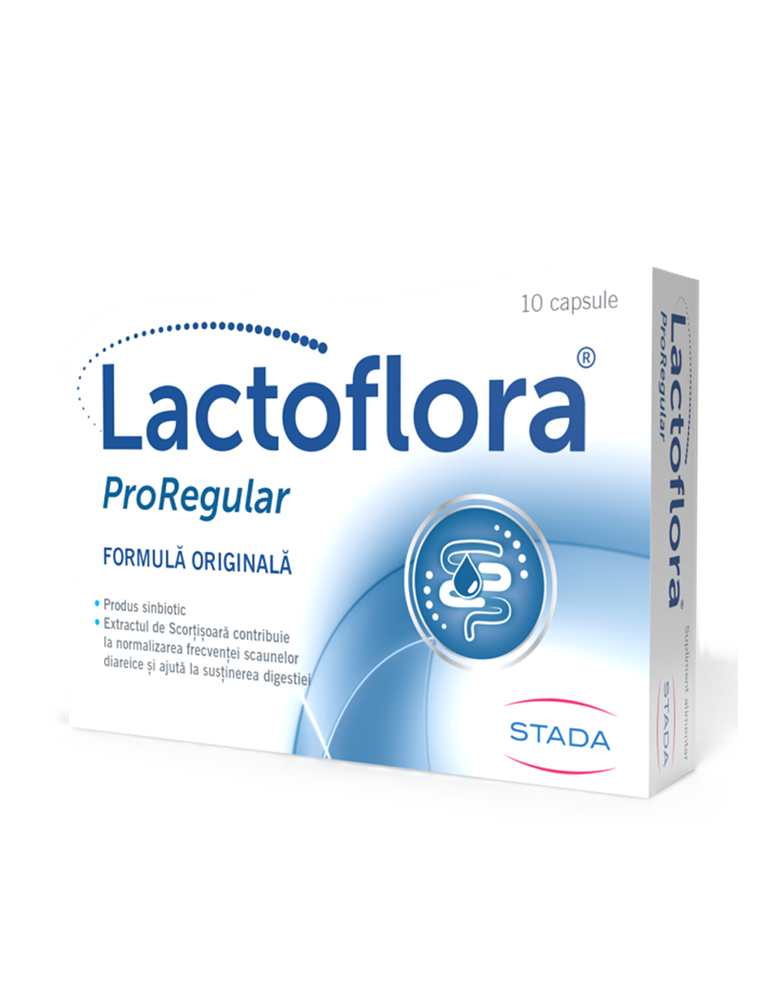 Lactoflora ProRegular 10 capsule este un supliment alimentar care poate contribui la susținerea tranzitului intestinal și la restabilirea echilibrului microbiotei intestinale.
