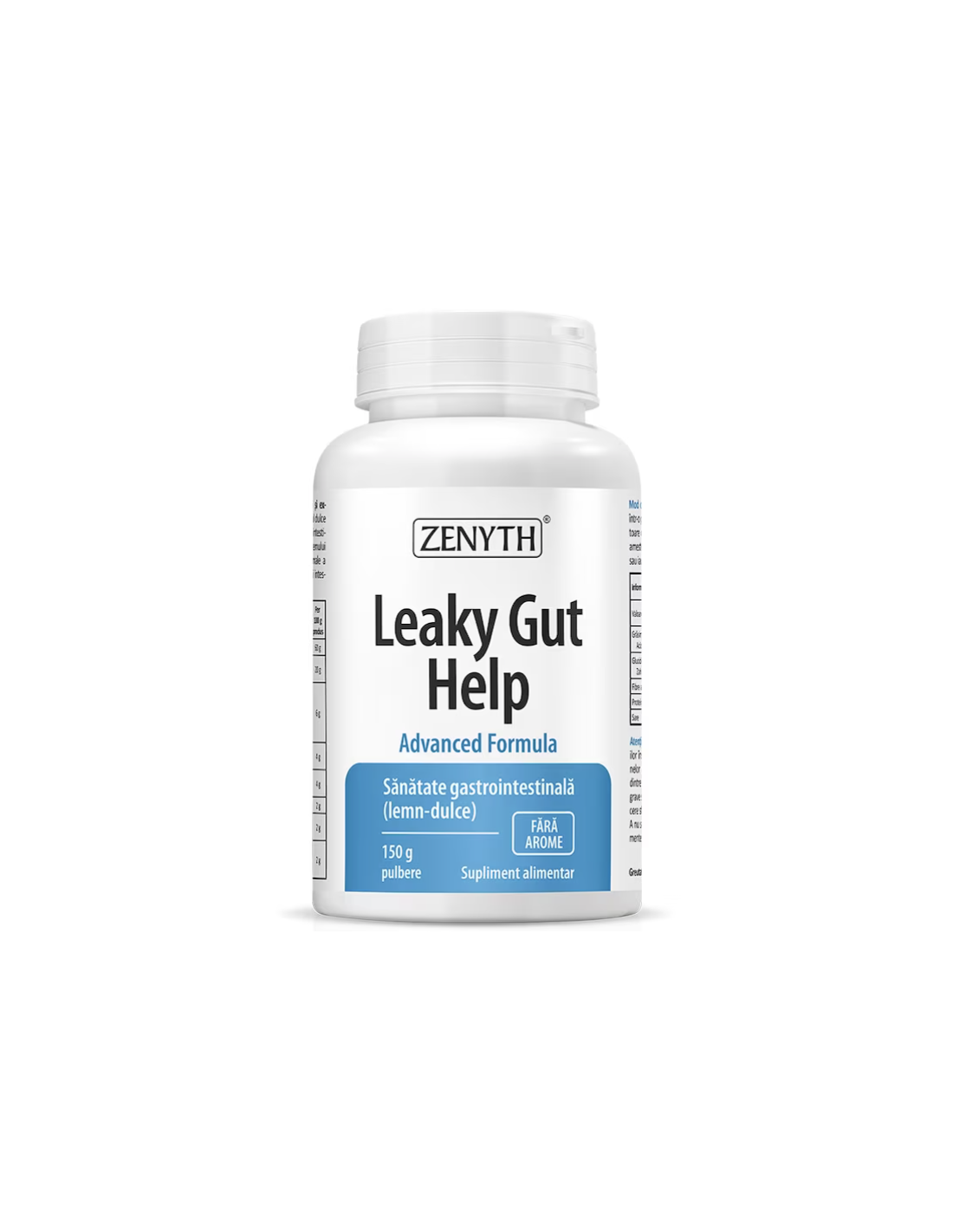 Leaky Gut Help 150 g – pulbere, Zenyth este un supliment alimentar formulat pentru susținerea sănătății gastrointestinale și pentru refacerea mucoasei intestinale în cazul sindromului de intestin hiperpermeabil (“leaky gut”).