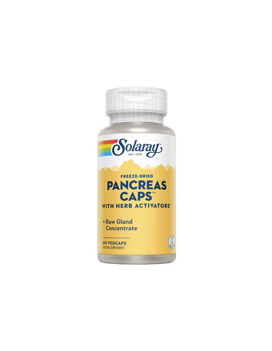 Solaray Pancreas Caps – 60 capsule vegetale este un supliment alimentar formulat cu concentrat glandular pancreasic liofilizat (bovine sau porcine), combinat cu activatori botanici și nutrienți homeopatici pentru efect sinergic.*